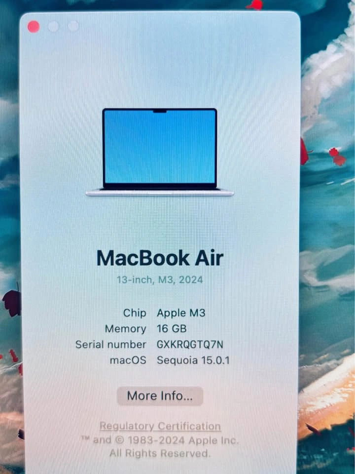 Apple Macbook Air 13” M3 2024 16GB 500GB Fully Functional