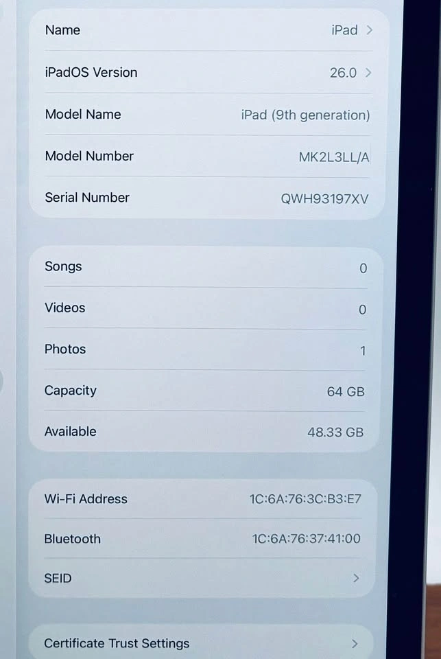 I am selling Apple iPad 9th Gen, WiFi, 10.2”, 64 GB. I factory reset it so it’s like new and all accounts and data is removed.
