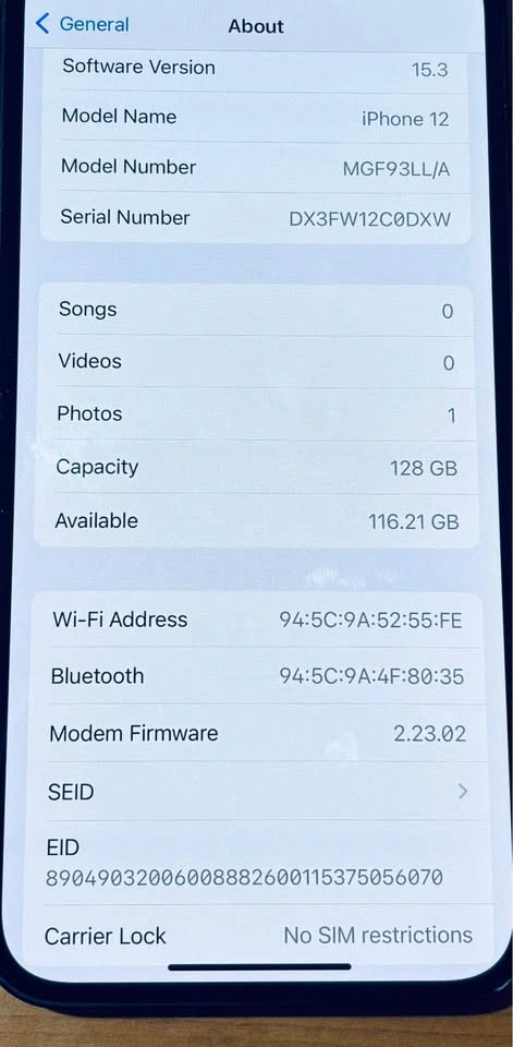 APPLE IPHONE 12 128GB Unlocked Fully Functional