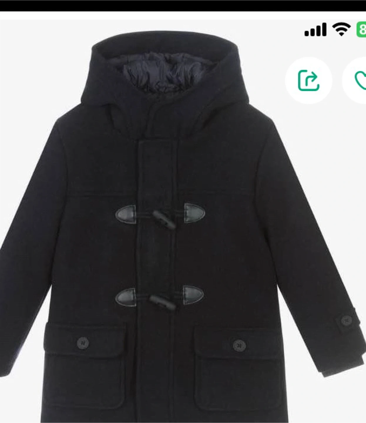 Here's a stylish navy blue duffle coat in great condition! It's made from a cozy wool blend and features a classic design with toggle closures and a hood. Perfect for staying warm and looking sharp this season!