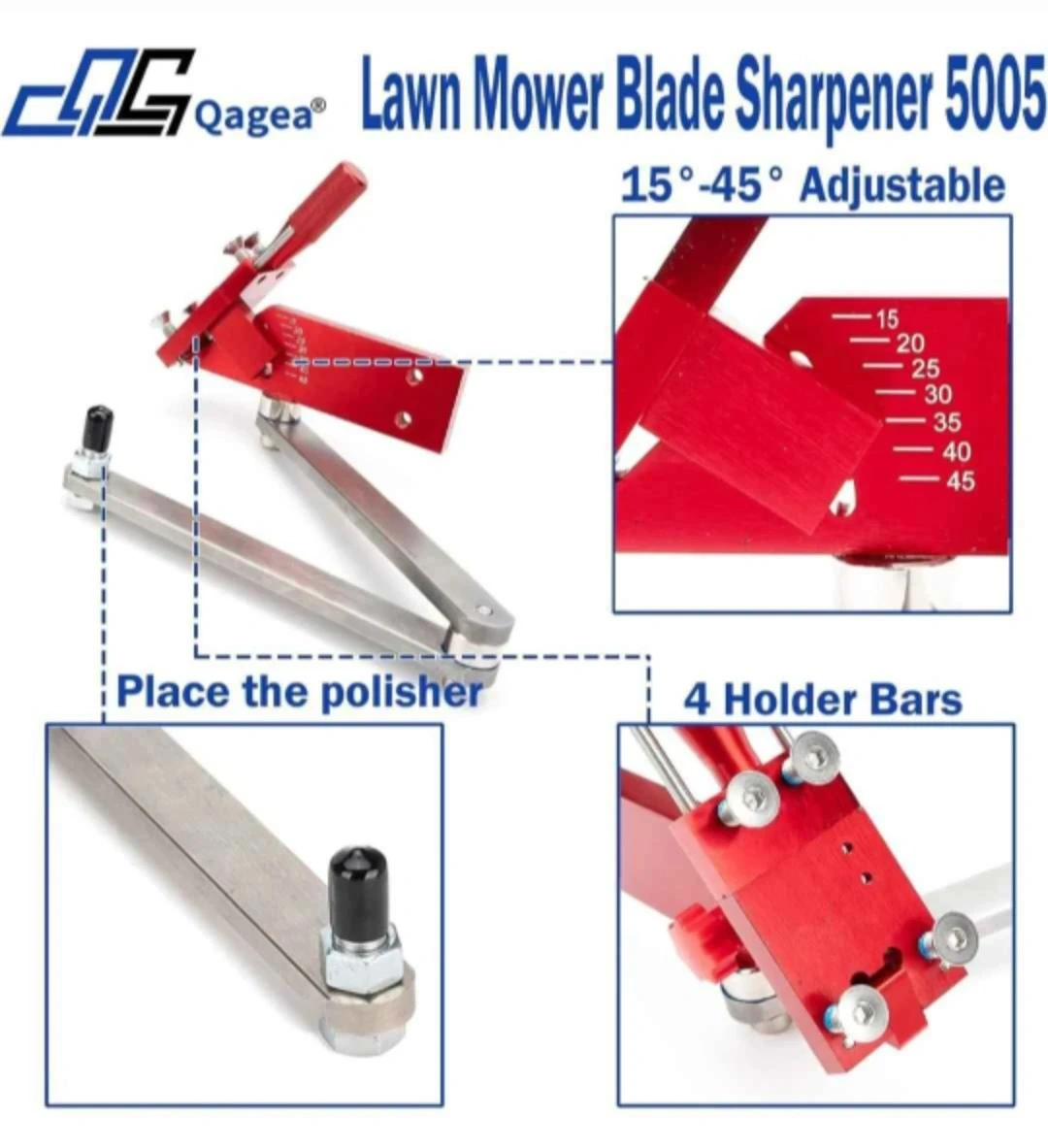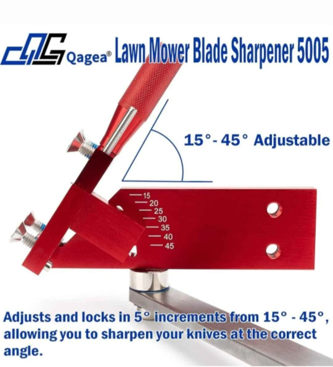 Qagea Sharpener Model 5005 Red Lawn Mower Blade Sharpener 15°-45° Adjustable for Straight and Standard Lawn Mower Blades