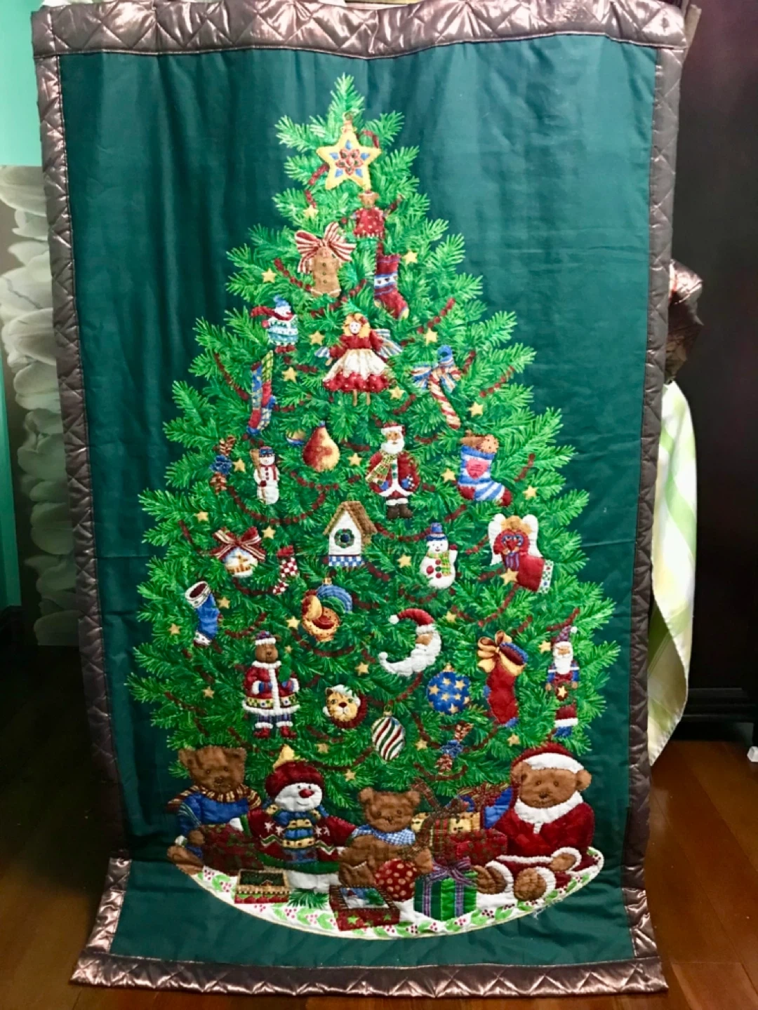 Hand made Wall hanging Hand quilted and glitter painted to enhance the 3D quilting effect. Measures 38” x 61”. Brand new handmade.