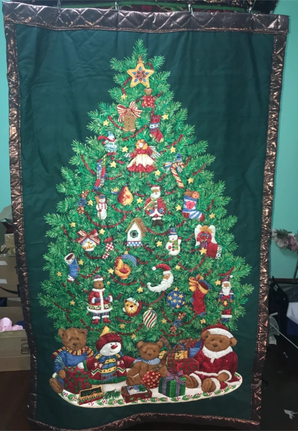 Add a festive touch to your home with this charming Christmas tree tapestry! It features a beautifully decorated tree with various ornaments and teddy bears at the base. Perfect for adding a cozy and cheerful atmosphere to any room during the holiday season