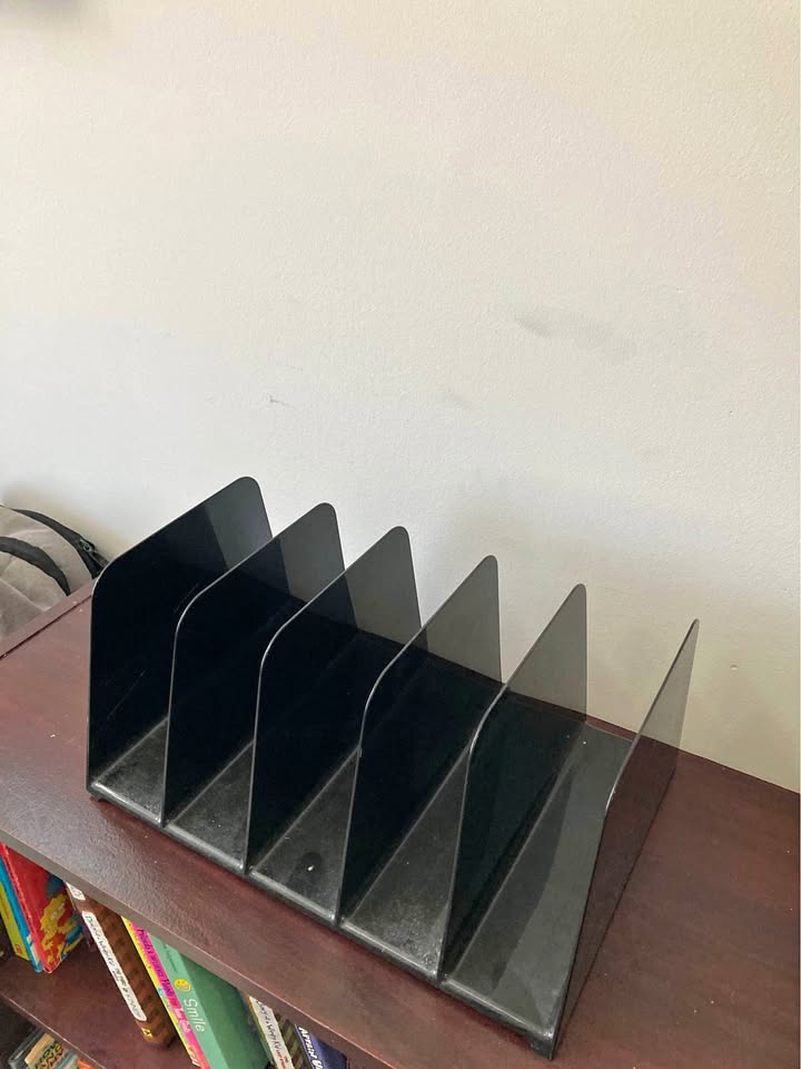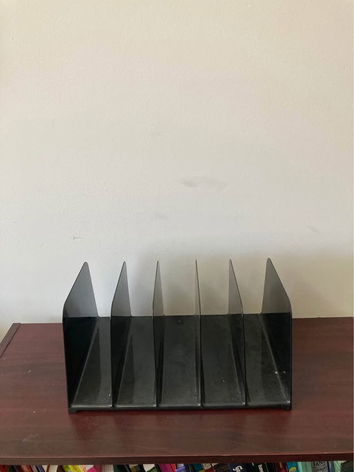 Keep your workspace neat and organized with this 5-slot black plastic file organizer — perfect for holding folders, mail, notebooks, or papers. Its simple, functional design fits any home office, classroom, or workspace setup.