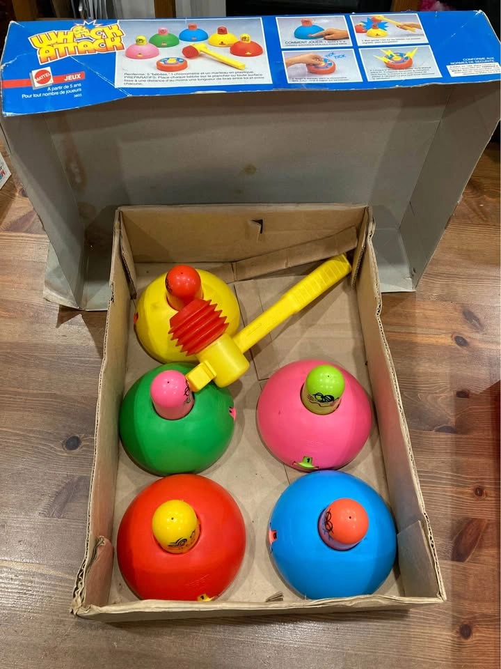 Add some retro fun to your next game night with this vintage Mattel Whack Attack game from 1990! A fast-paced, hilarious challenge where players race against time to “whack” the correct colored dome before it pops up again.