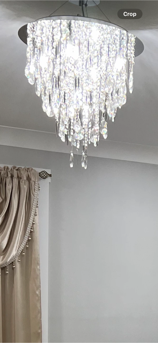 Selling a beautiful crystal chandelier. It adds a touch of elegance to any room. Perfect for dining rooms, living rooms, or entryways. It's in great condition and ready to brighten up your home
