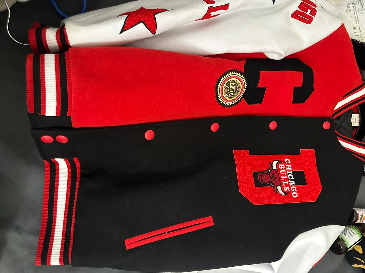 60Selling a Chicago Bulls varsity a jacket! It features the classic Bulls logo and colors. Perfect for any fan!