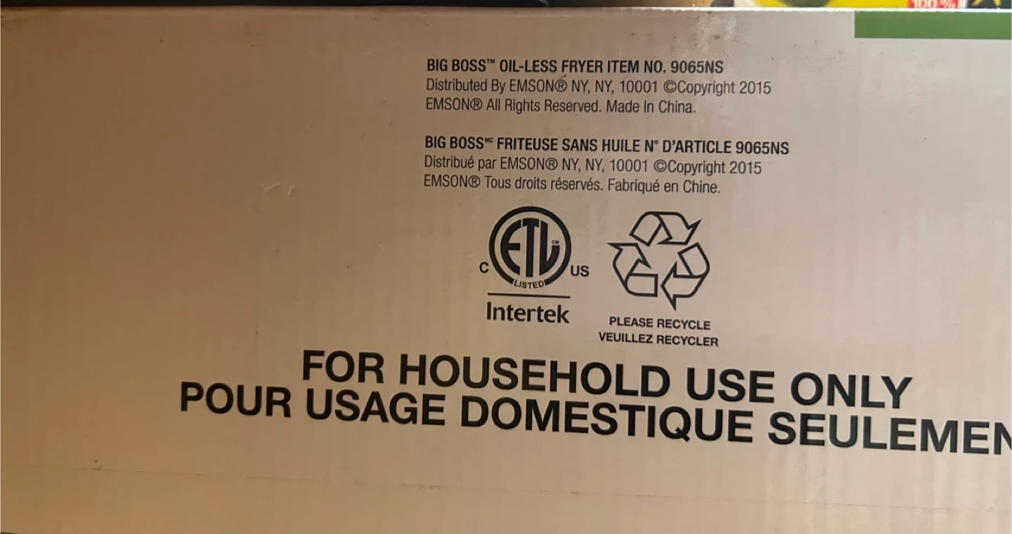 Selling a Big Boss Oil-Less Fryer, model number 9065NS. It's great for making crispy fries and chicken without all the oil. Perfect for household use!