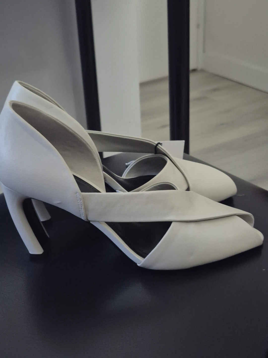 These Zara asymmetric leather sandals are in great condition! They are a size 9 and feature a unique design with a stylish heel. Perfect for adding a touch of elegance to any outfit