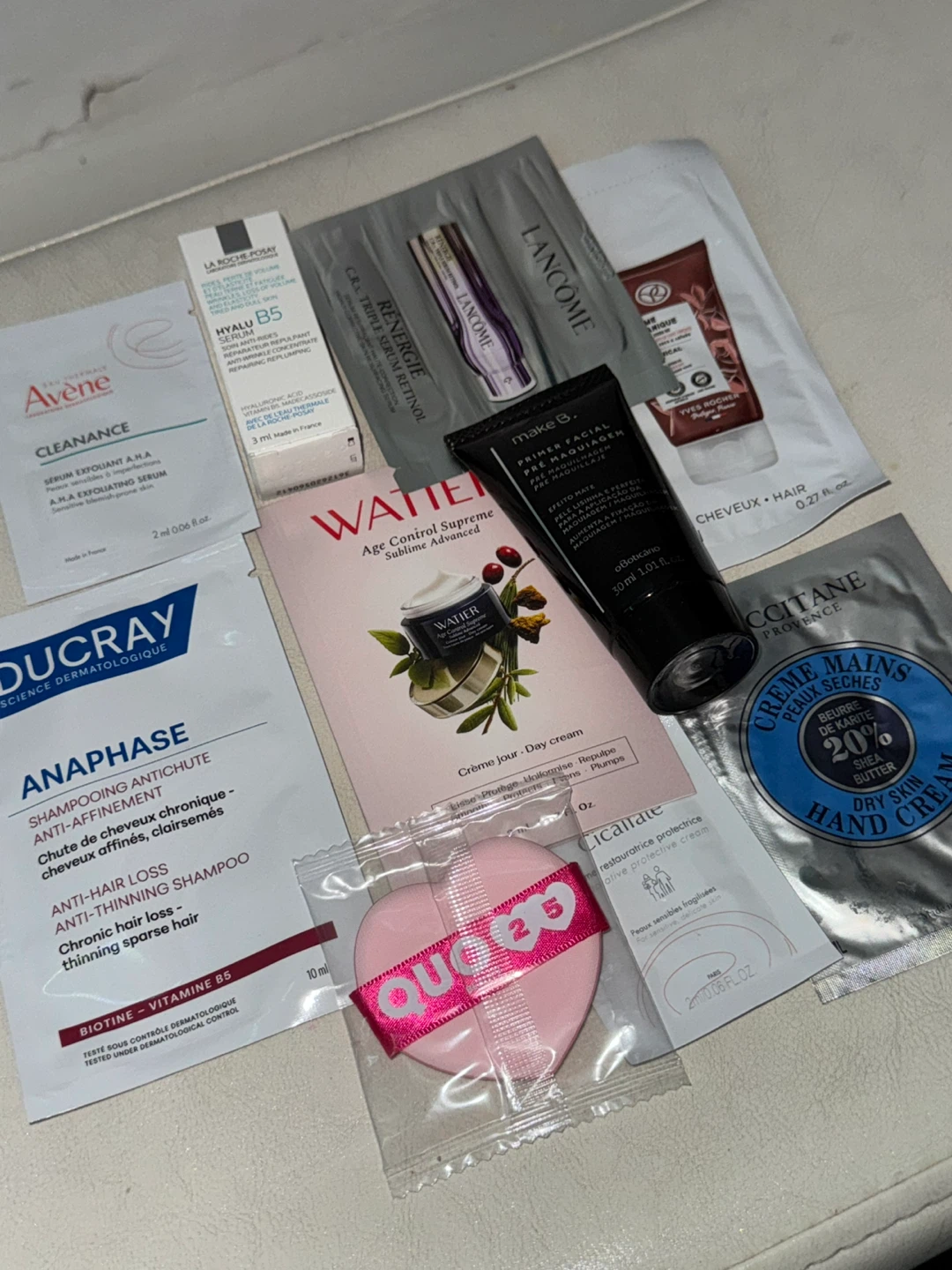 I'm offering a collection of various skincare samples from well-known brands like Avène, Lancôme, L'Occitane, and others! Perfect for trying out new products or for travel