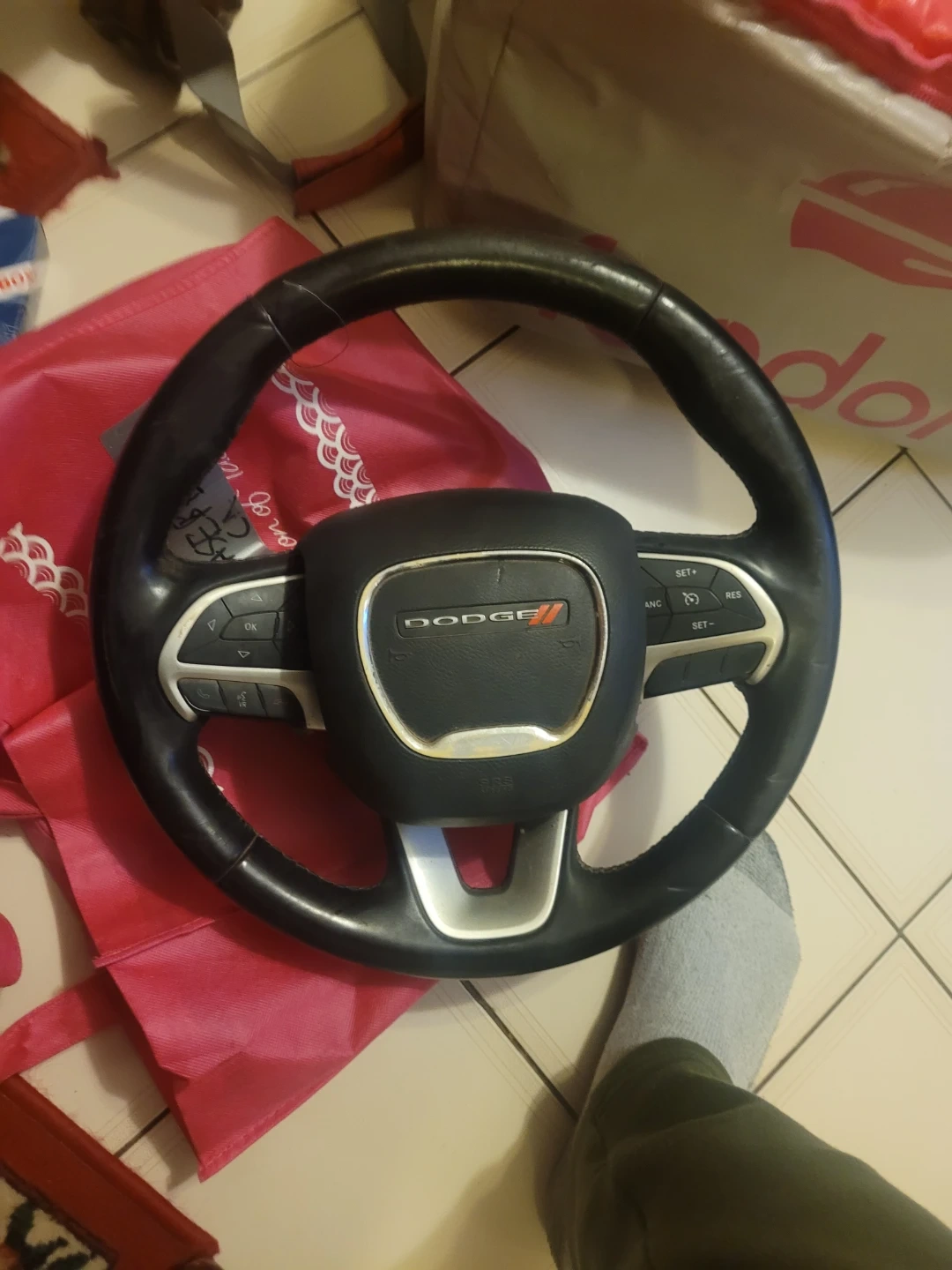 Selling a Dodge steering wheel. It has some wear and tear, as shown in the photos, but is still in good working condition. Perfect for replacing a damaged wheel or for a custom project. On the wheel by itself, no horn or airbag