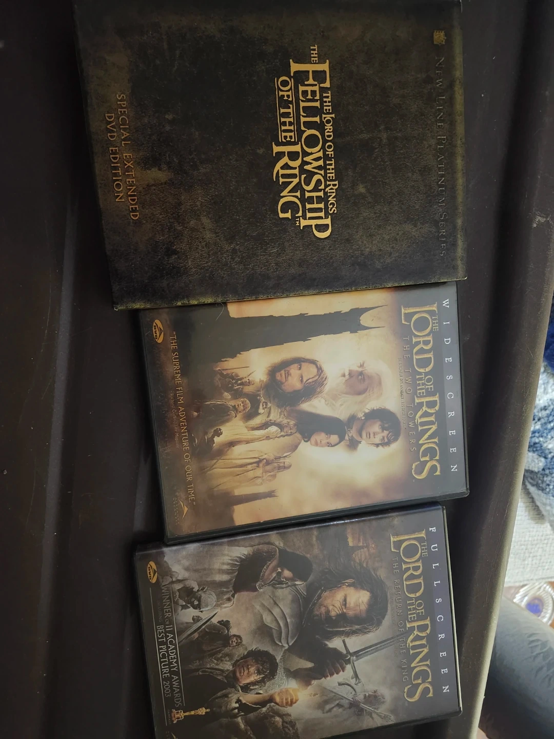 Selling a Lord of the Rings DVD set, including The Fellowship of the Ring (Special Extended DVD Edition), The Two Towers (Widescreen), and The Return of the King (Fullscreen)