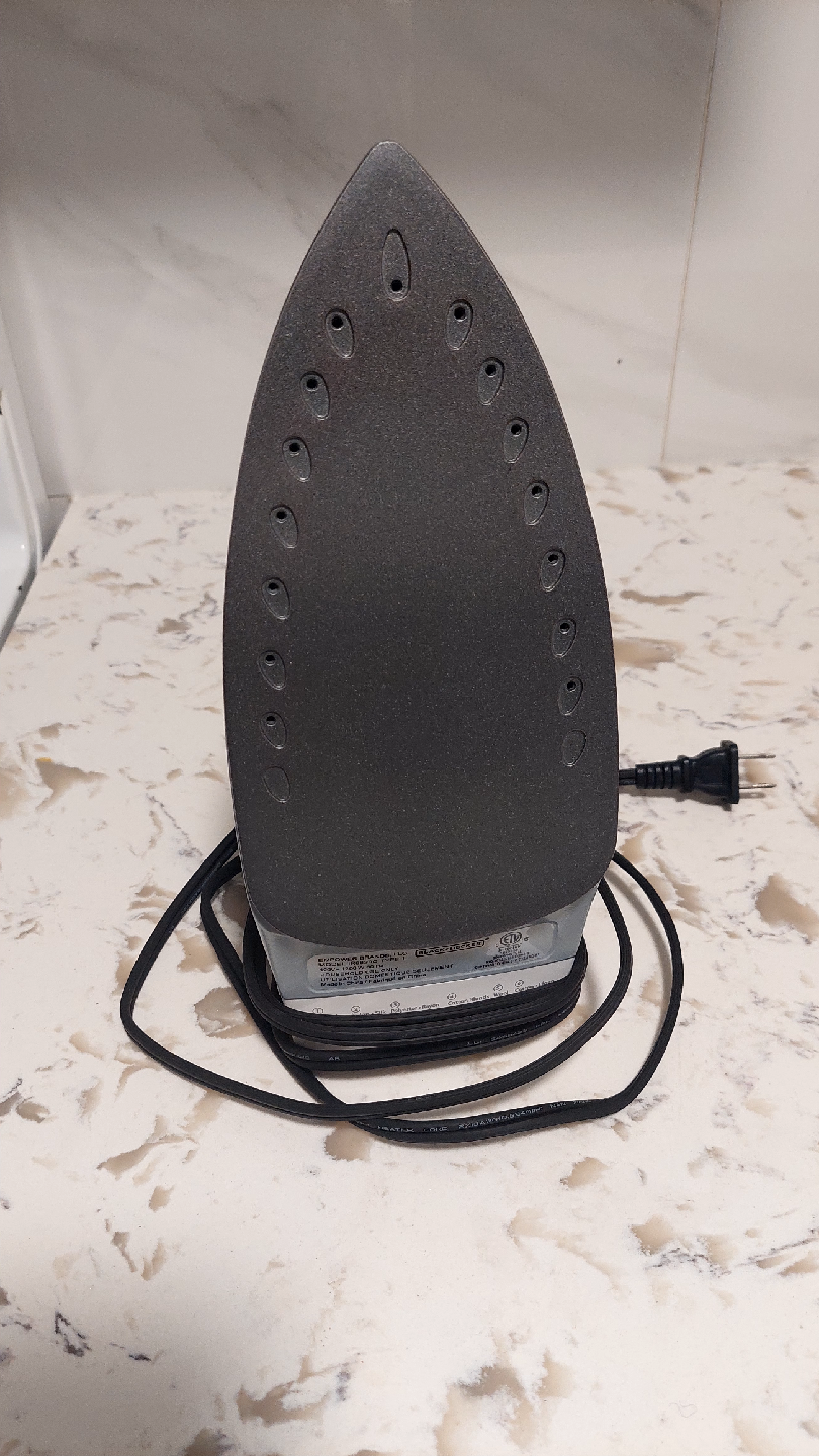 Selling a Black+Decker steam iron in great condition! It's white and blue and ready to get those wrinkles out. Perfect for keeping your clothes looking sharp!