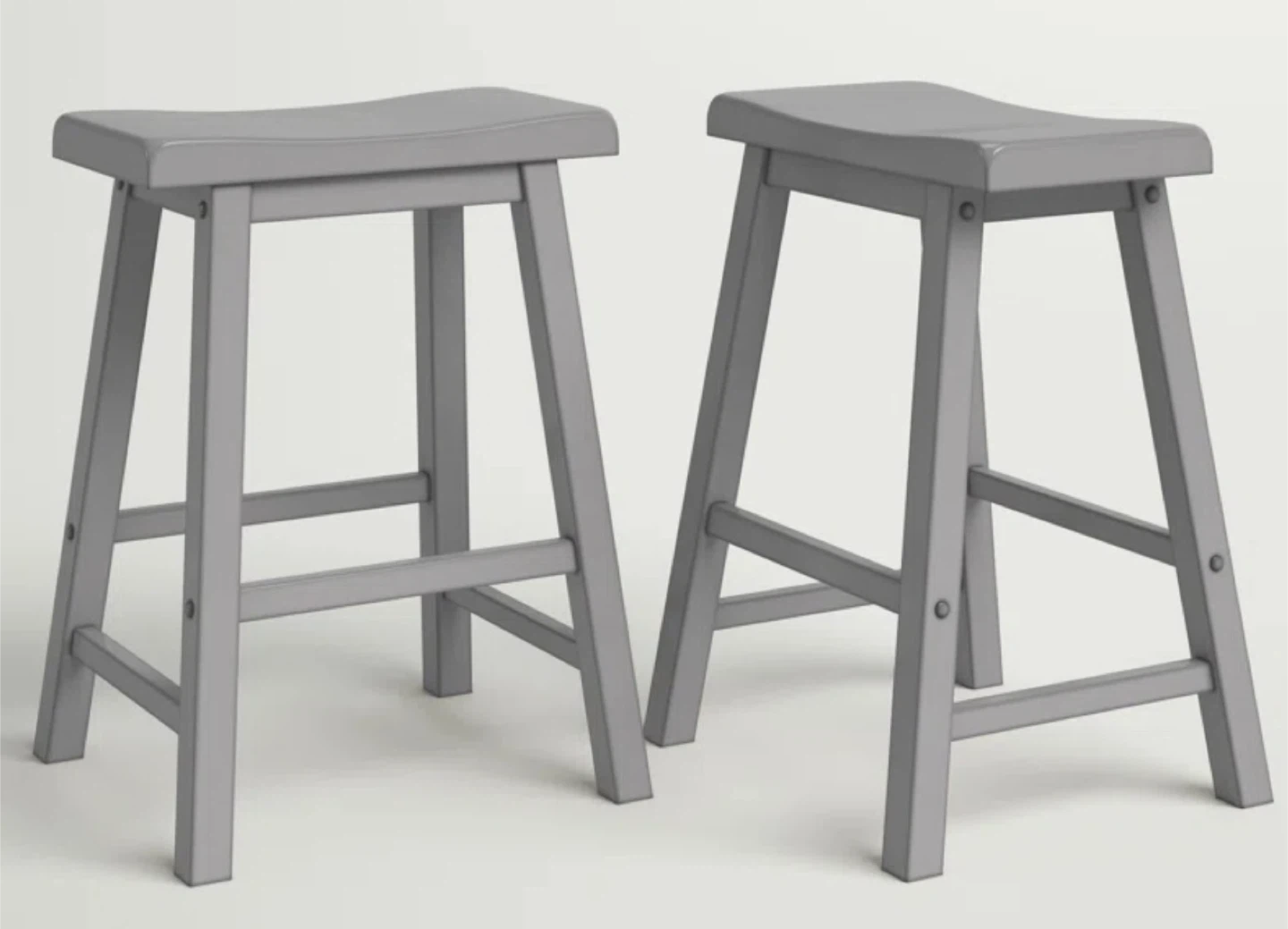 this stool offers a classic seating arrangement for kitchen islands or dining tables. And it's easy to carry from room to room thanks to its lightweight, backless design. Crafted from solid wood, it comes in a finish of your choice to fit your space's aesthetic and color scheme to a T. Four slanted legs connected by a footrest and a saddle seat round out the look with a flourish. Each stool in this set accommodates up to 250 lbs.