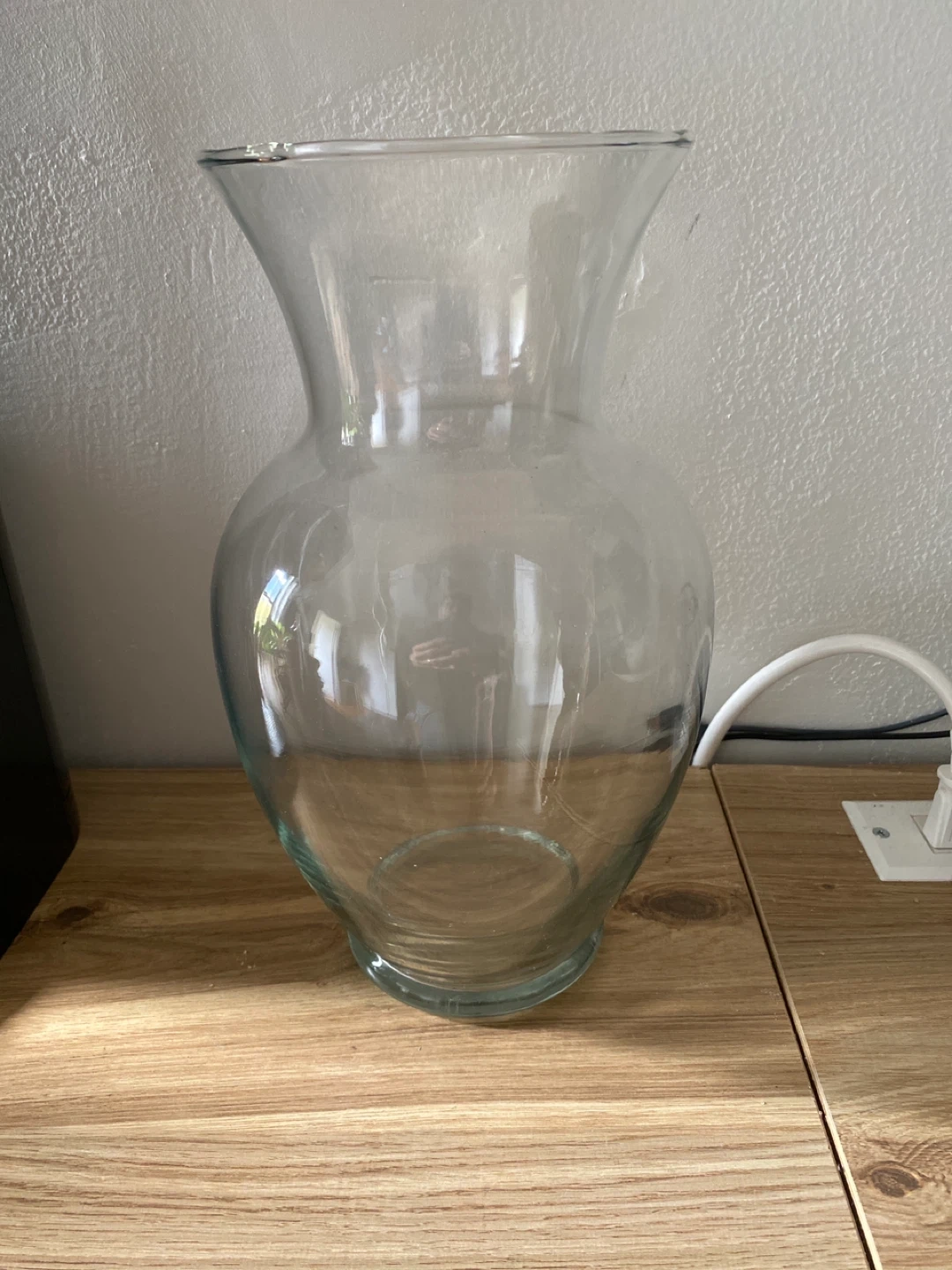 Selling a clear glass vase, perfect for displaying flowers or as a decorative piece! It's in great condition and ready to brighten up your space