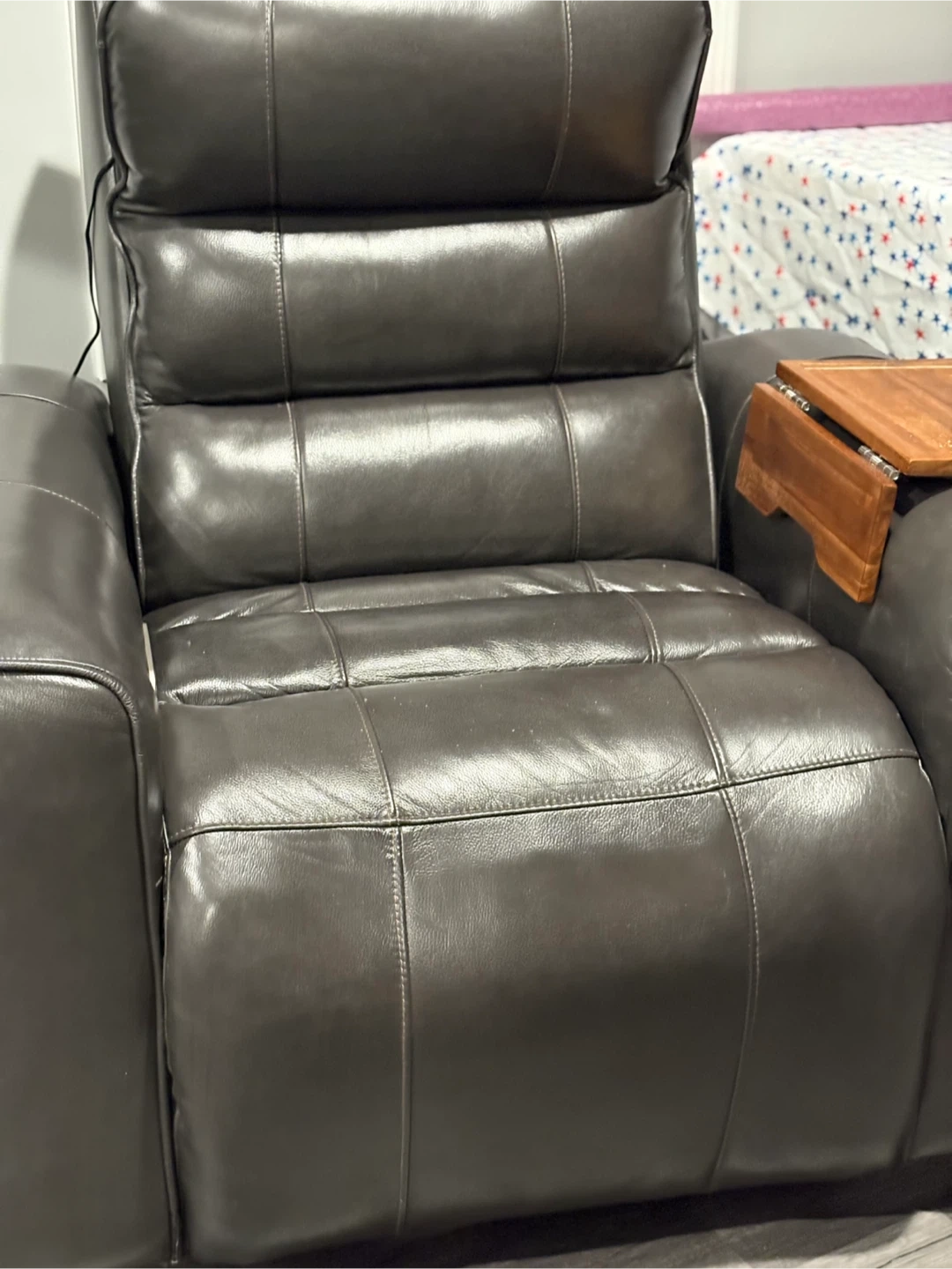 Selling a comfortable leather recliner chair. It's in great condition and perfect for relaxing! The chair features a sleek design and is made of high-quality leather. It would be a great addition to any living room or entertainment area
