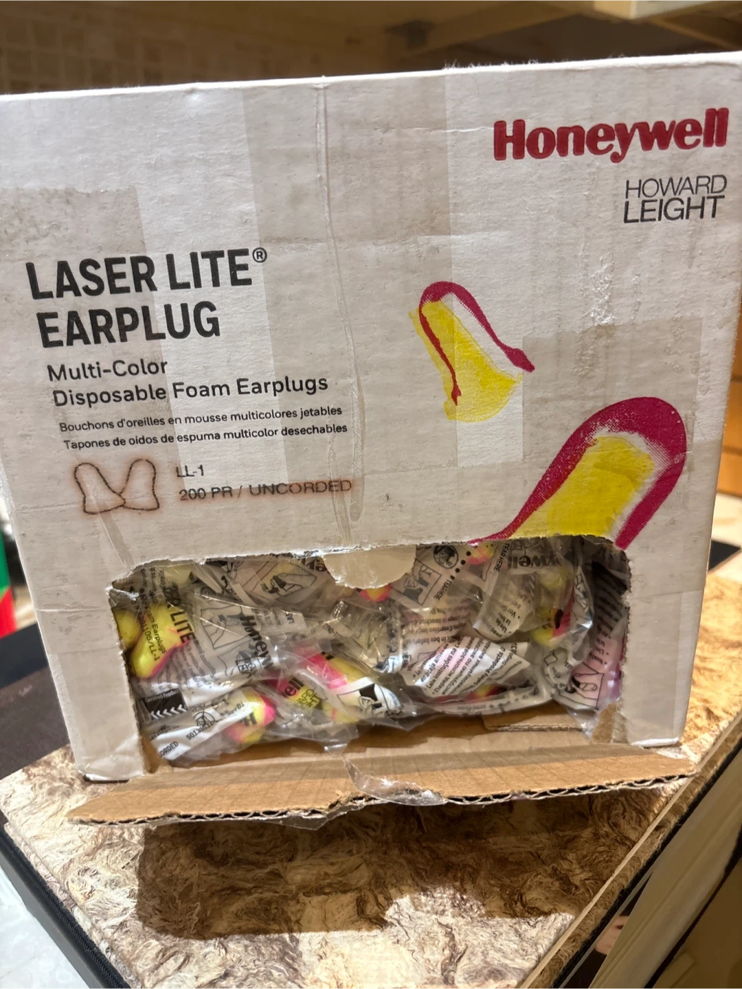 Selling a box of Honeywell Laser Lite Earplugs. These are multi-colour, disposable foam earplugs. The box contains 200 pairs and they are uncorded. Only 2 were used from the box - I have no place for storing these so Iβm selling them - great for sleep, travel, camping, construction etc,