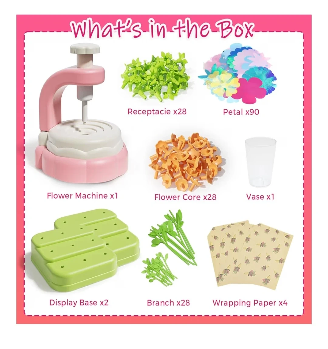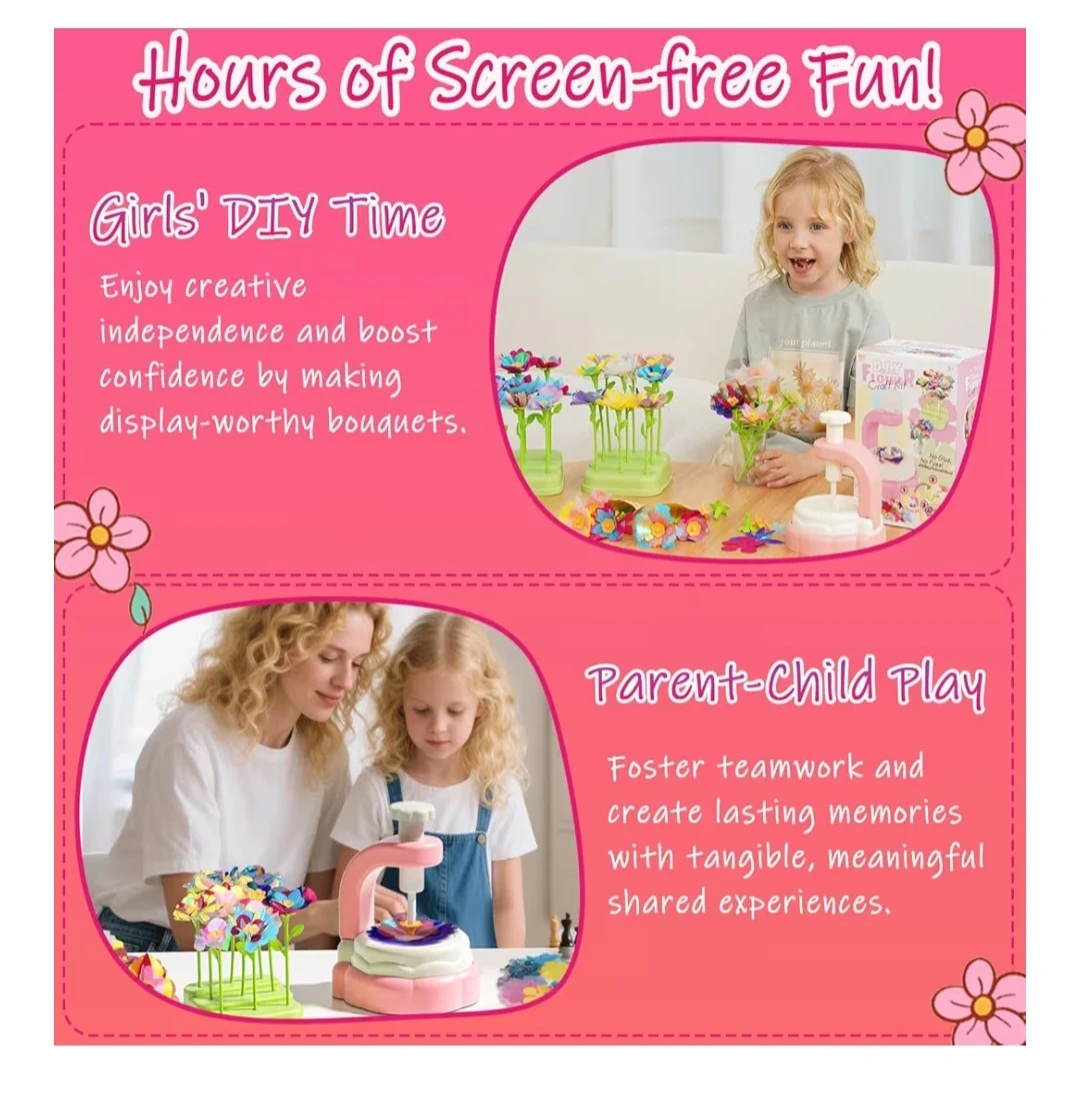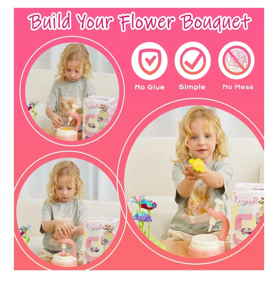 Unleash your child's creativity with this D.I.Y Flower Craft Kit! It's brand new in the box and ready for some screen-free fun. The kit includes everything needed to build beautiful flower bouquets with no glue and no mess. It's perfect for girls' DIY time and parent-child play, fostering teamwork and creating lasting memories. The kit contains:
