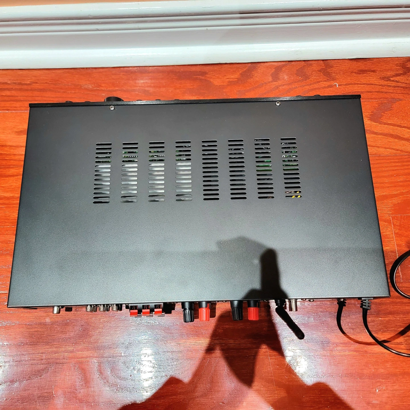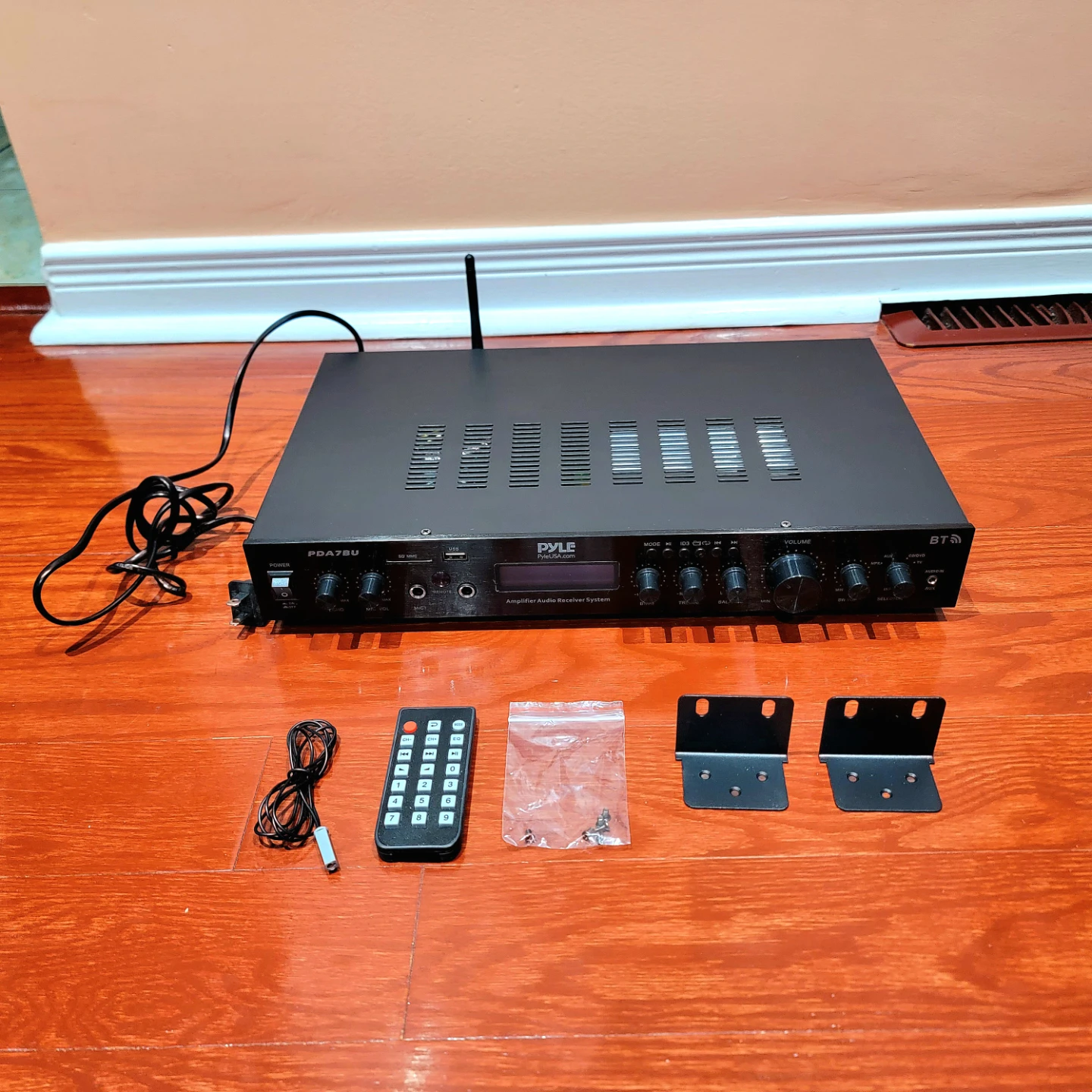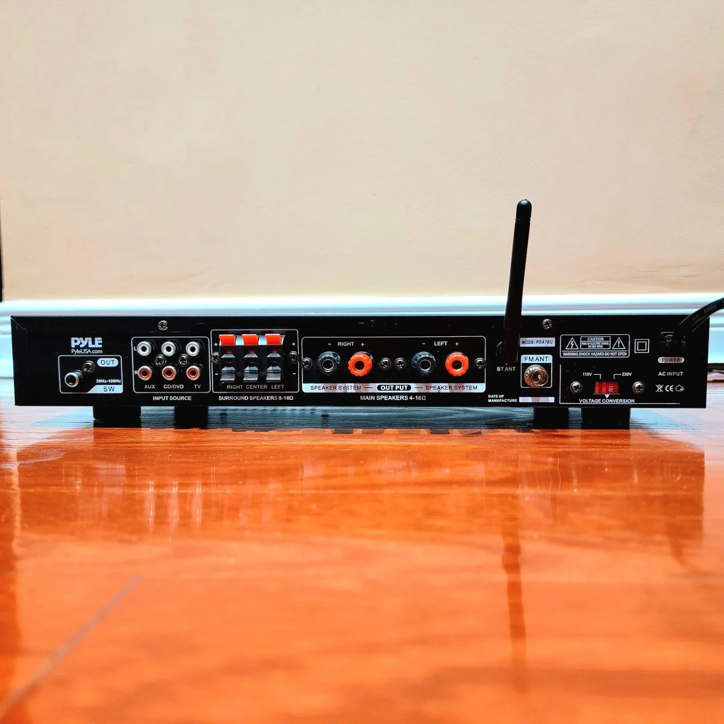 Bring powerful, clear sound to your setup with the Pyle Premium Bluetooth Home Stereo Amplifier Receiver. Designed for home audio enthusiasts, it delivers crisp, high-quality audio with easy wireless streaming straight from your phone, tablet, or computer. With multiple inputs for RCA, USB, SD, MP3, and FM radio, this amp fits perfectly into any entertainment system. The front control panel makes it simple to adjust volume, bass, and treble to your liking, while the compact design keeps your setup clean and organized. Perfect for home theaters, parties, or everyday listening