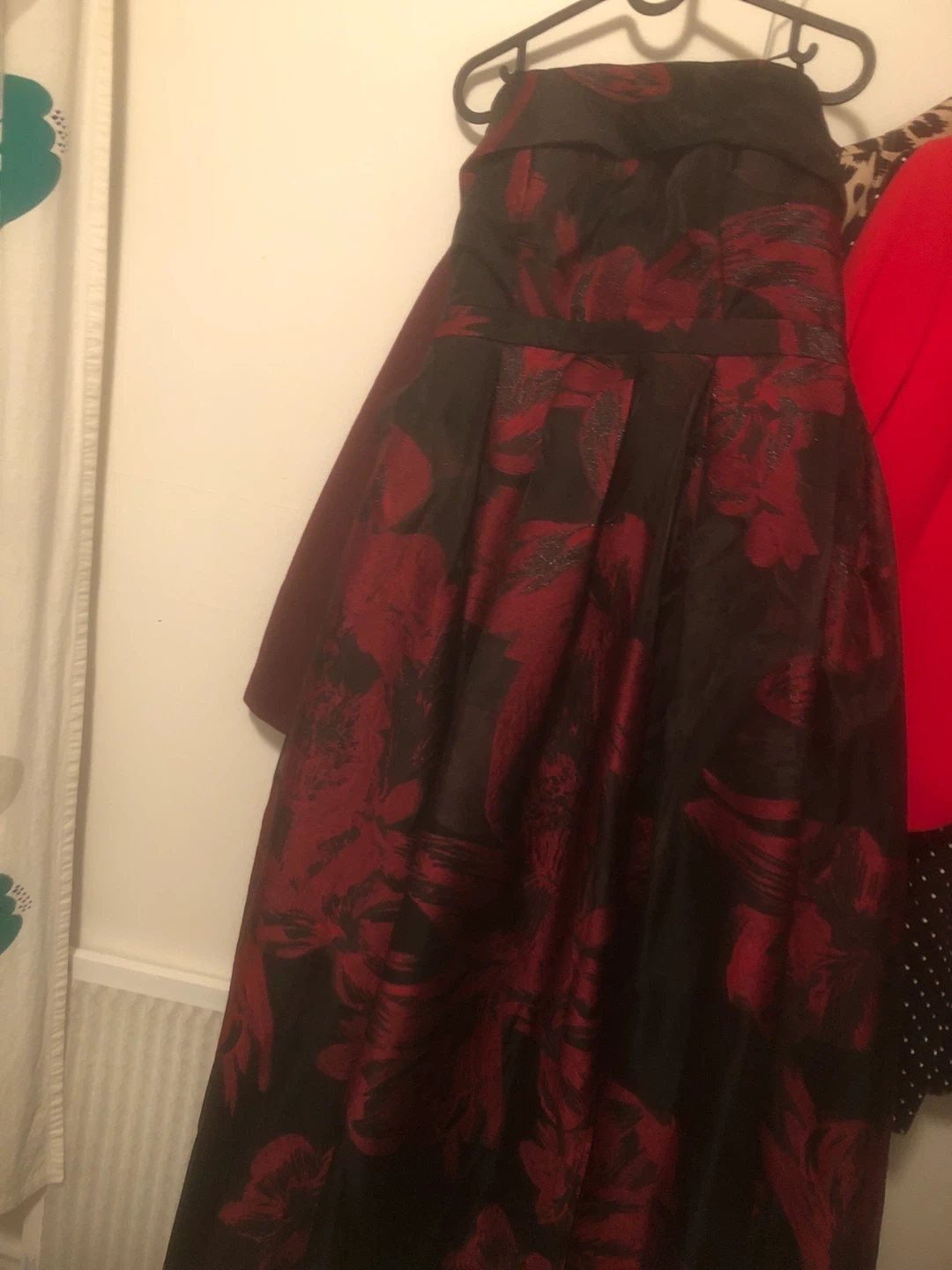 Selling a beautiful Le Chateau dress with a black and red floral pattern! It's in great condition and ready for a new home