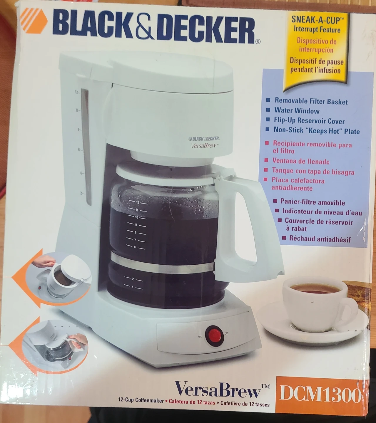 Selling a Black & Decker VersaBrew DCM1300 12-cup coffee maker! It features a sneak-a-cup interrupt feature, removable filter basket, water window, flip-up reservoir cover, and a non-stick "keeps hot" plate. Perfect for your morning coffee!
