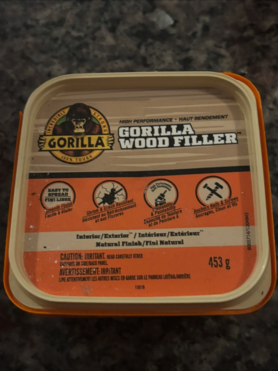 Open to trade. Selling a container of Gorilla Wood Filler. It's the natural finish and is suitable for both interior and exterior use. The container is 453g. It's easy to spread and provides a smooth finish. Plus, it's shrink and crack resistant!