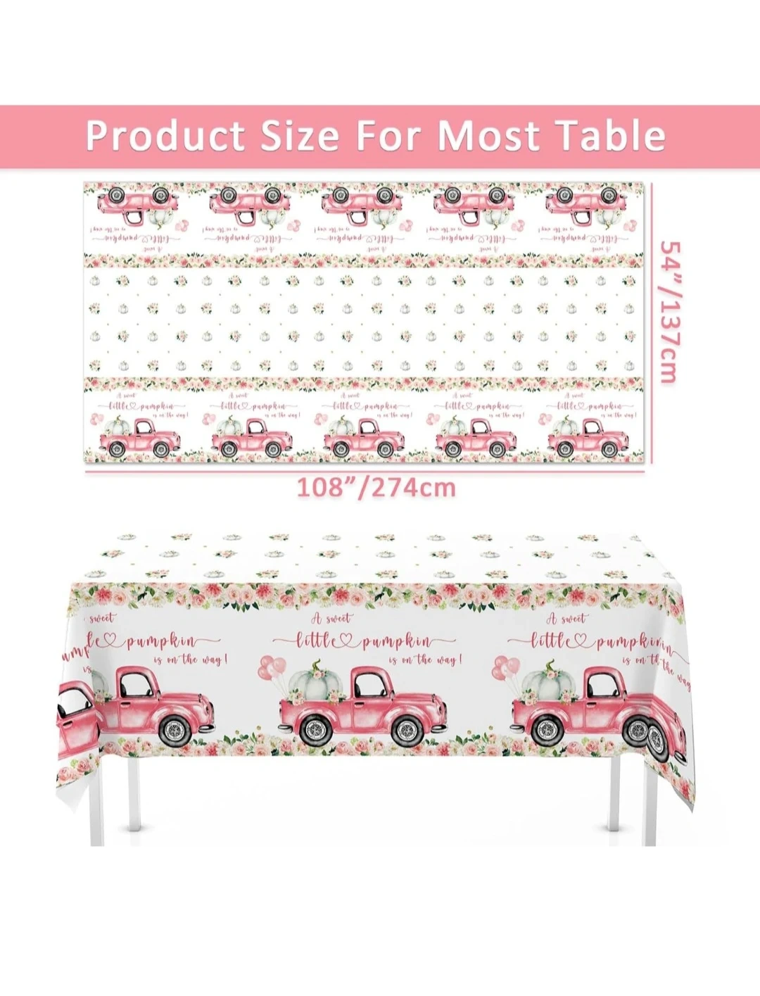 This adorable Little Pumpkin party supplies kit includes everything you need for a sweet celebration! The kit features a banner, plates (9" and 7"), cups, napkins, cutlery, and a tablecloth (108" x 54")