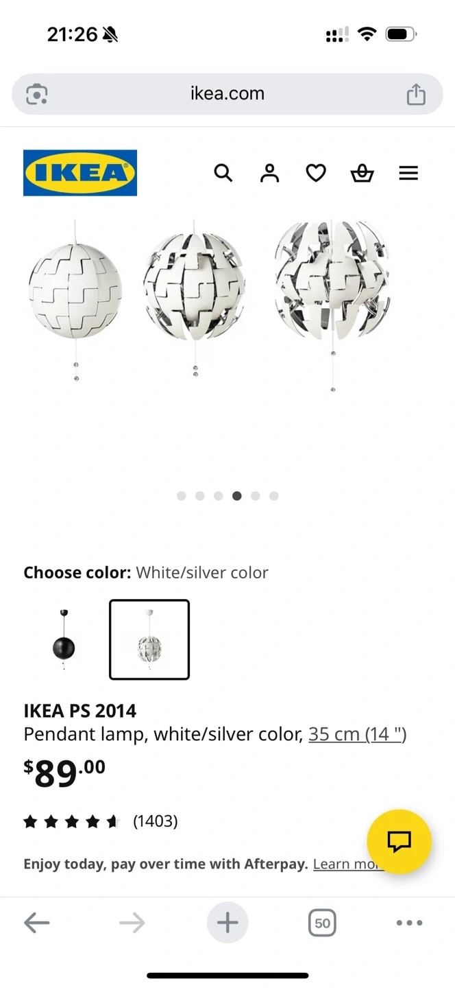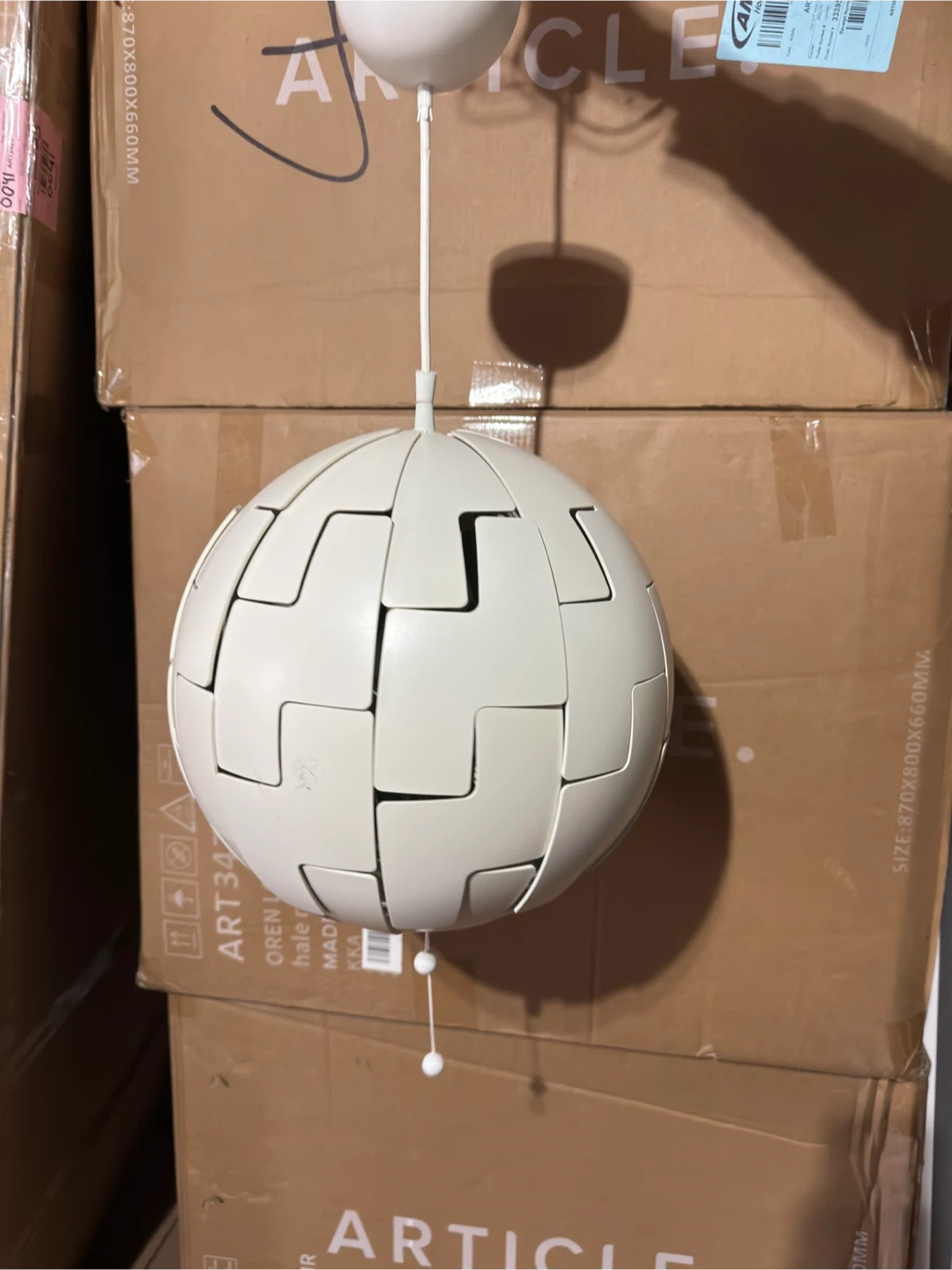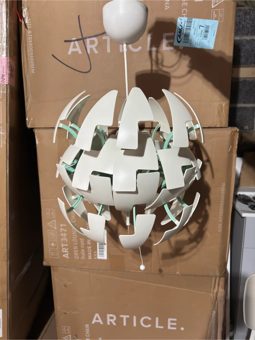 Selling an IKEA PS 2014 pendant lamp in white/silver. It measures 35 cm (14"). This unique lamp adds a modern touch to any room. Originally bought for $89!