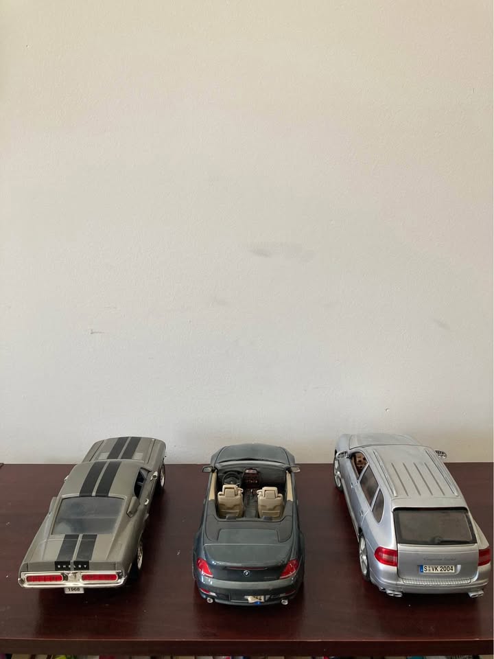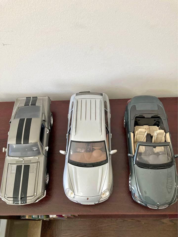 A great collector’s set of three detailed 1:18 scale diecast model cars, each featuring realistic interiors, rubber tires, and metal body construction. Perfect for display, photography, or adding to any model car collection.