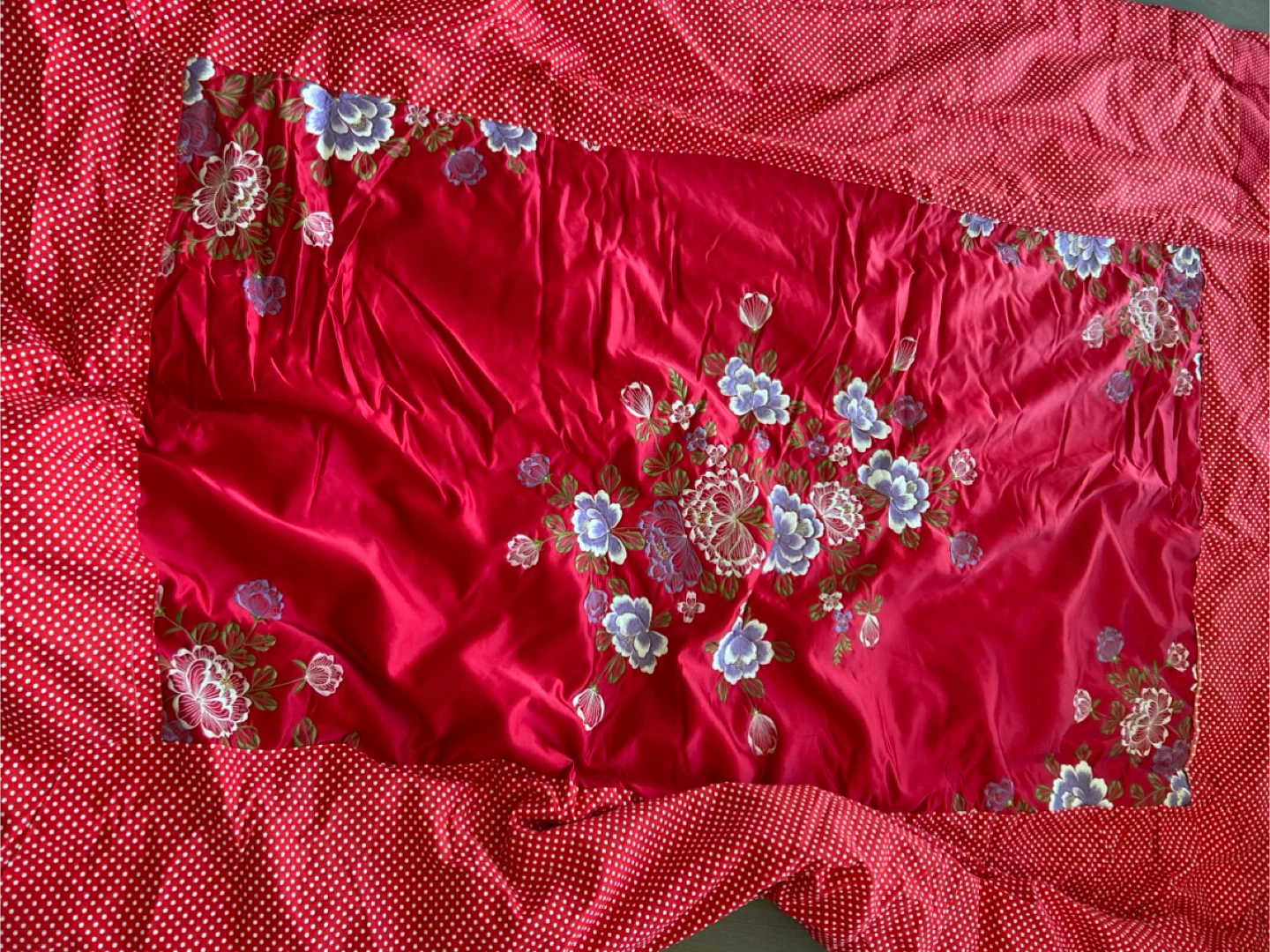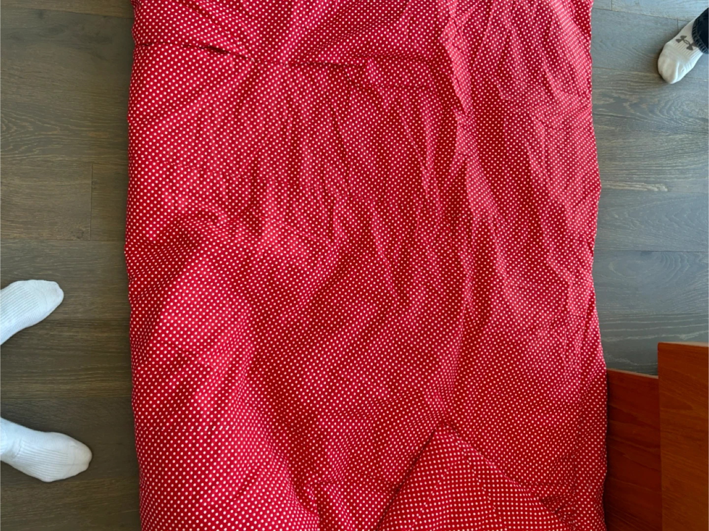 I have a 100% pure cotton filled duvets for sale. a red bedding set with a fun polka dot pattern on one side and a floral design on the other! It's in great shape and ready to add a pop of color to your bedroom
