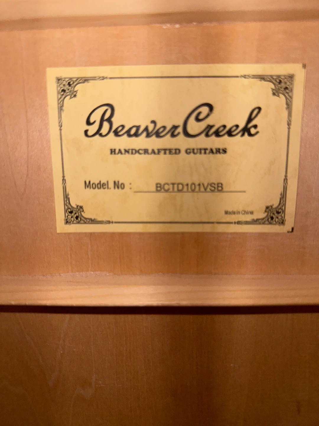 Selling a Beaver Creek acoustic guitar, model BCTD101VSB. It's in great shape and ready for a new home! This handcrafted guitar has a beautiful sunburst finish.