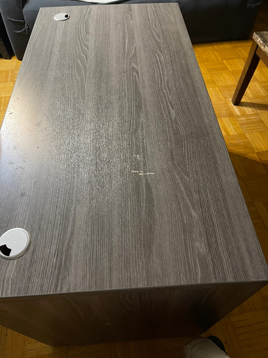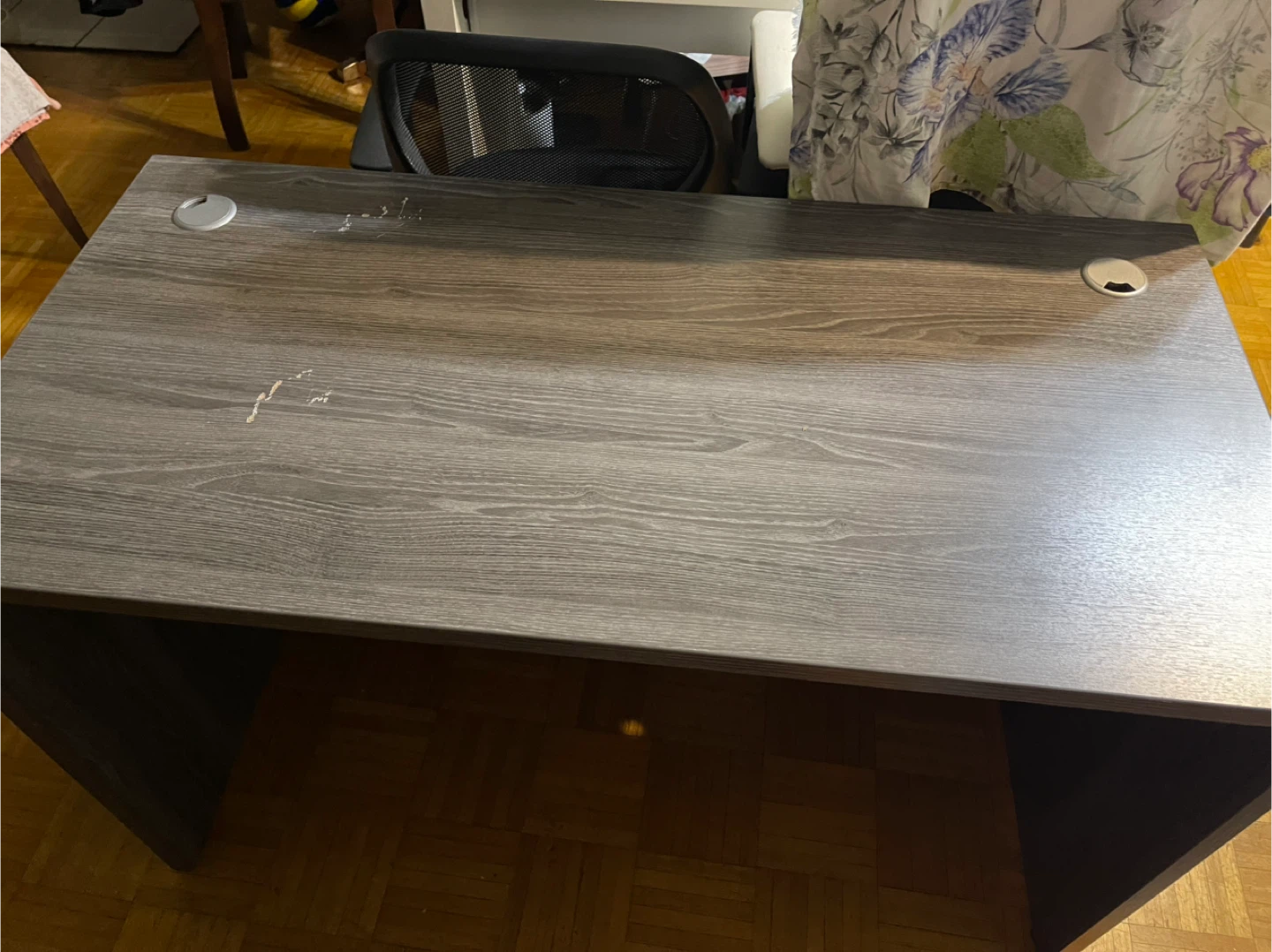 Selling a heavy wood grain desk Assembled.. It has some wear and tear on the top surface, as shown in the pictures. Otherwise is Perfect and heavy clean desk for a home office or study space. . It's suitable for any home office or professional workspace!