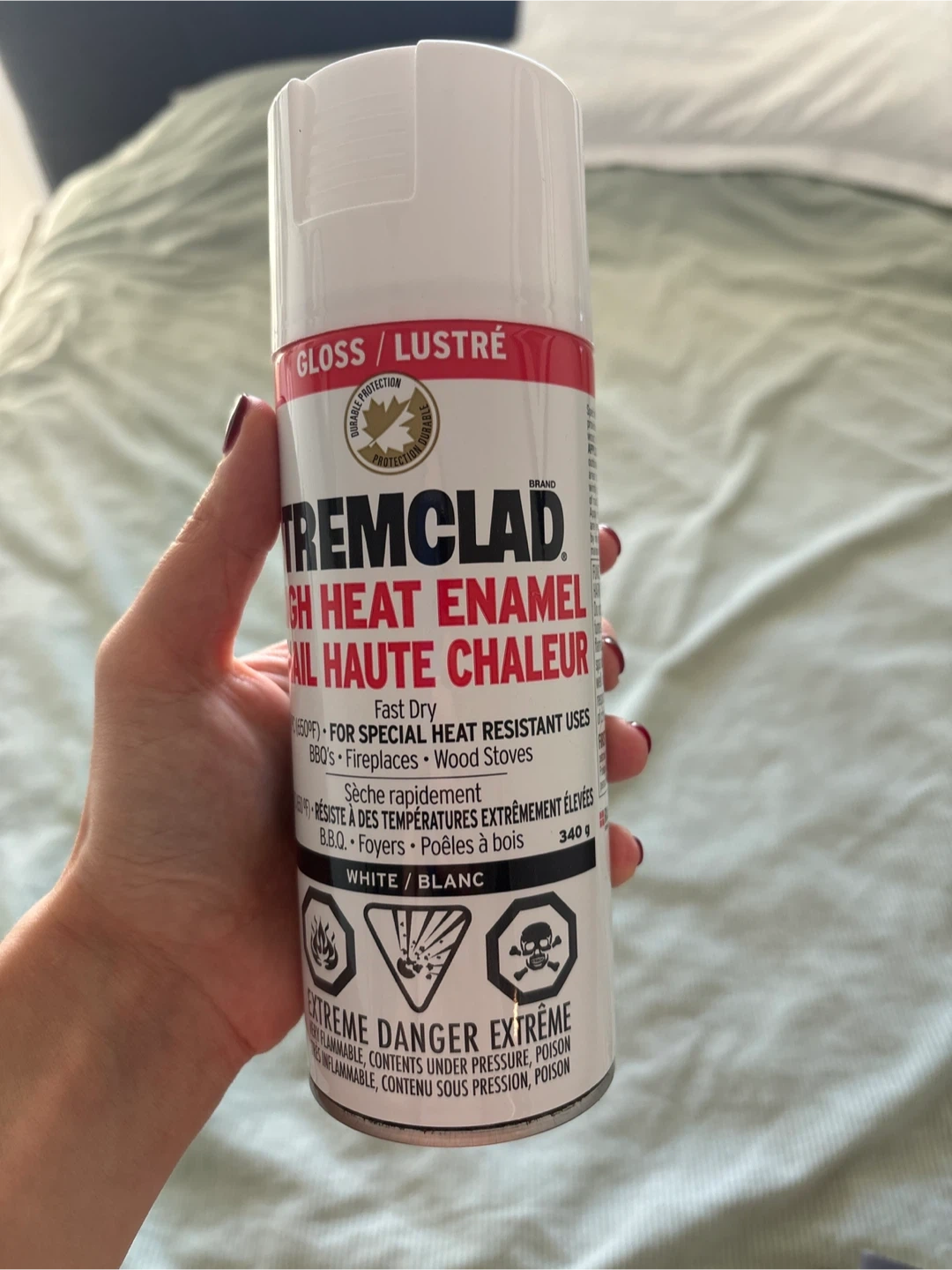 Selling a can of Tremclad High Heat Enamel in white! It's perfect for special heat resistant uses such as on BBQs, fireplaces, and wood stoves. It's a fast-drying enamel that resists extreme temperatures.