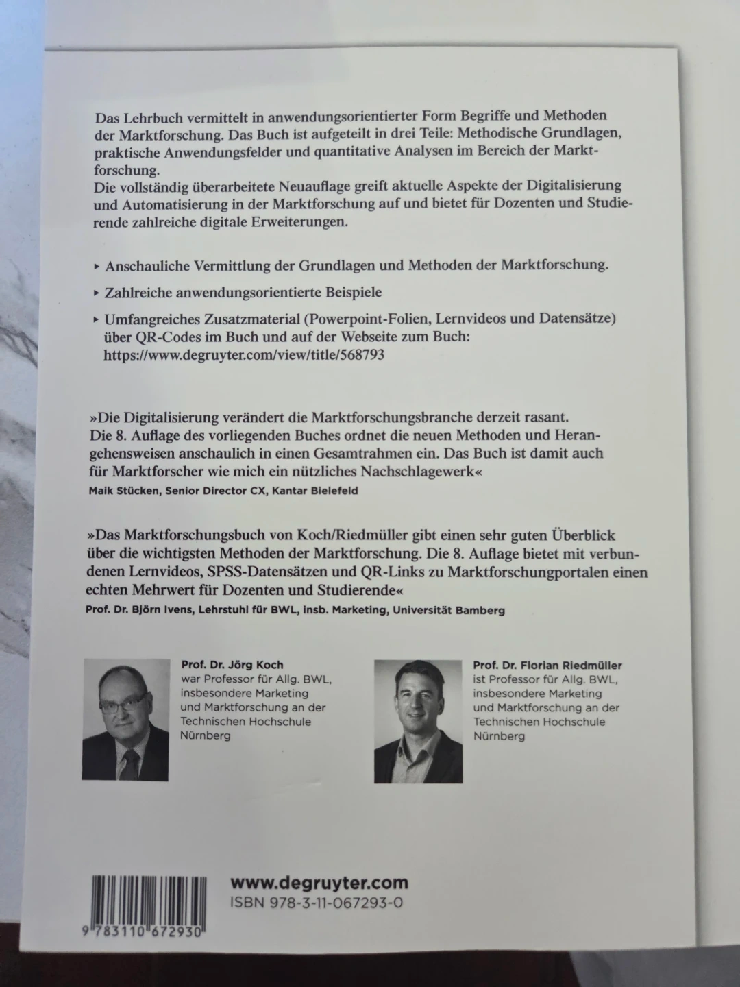 Selling a copy of "Marktforschung: Grundlagen und praktische Anwendungen" by Jörg Koch and Florian Riedmüller. This book covers the fundamentals and practical applications of market research. It includes additional material such as PowerPoint slides, learning videos, and datasets available through QR codes and the website. Perfect for students and researchers in the field of marketing!