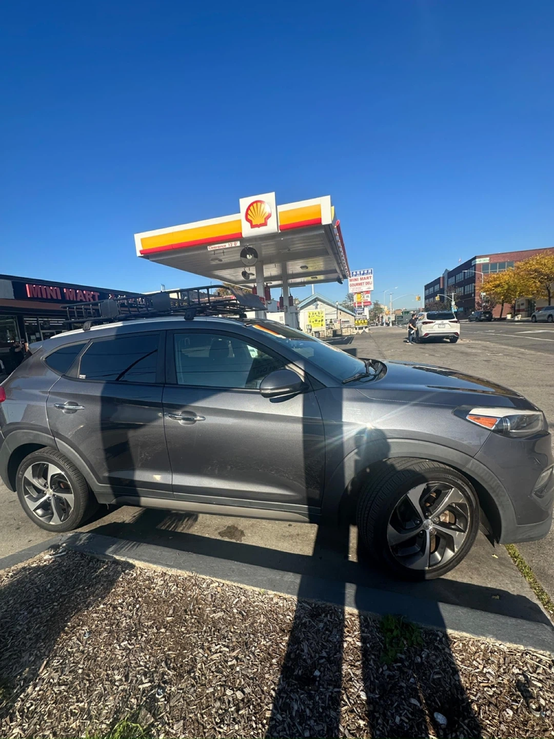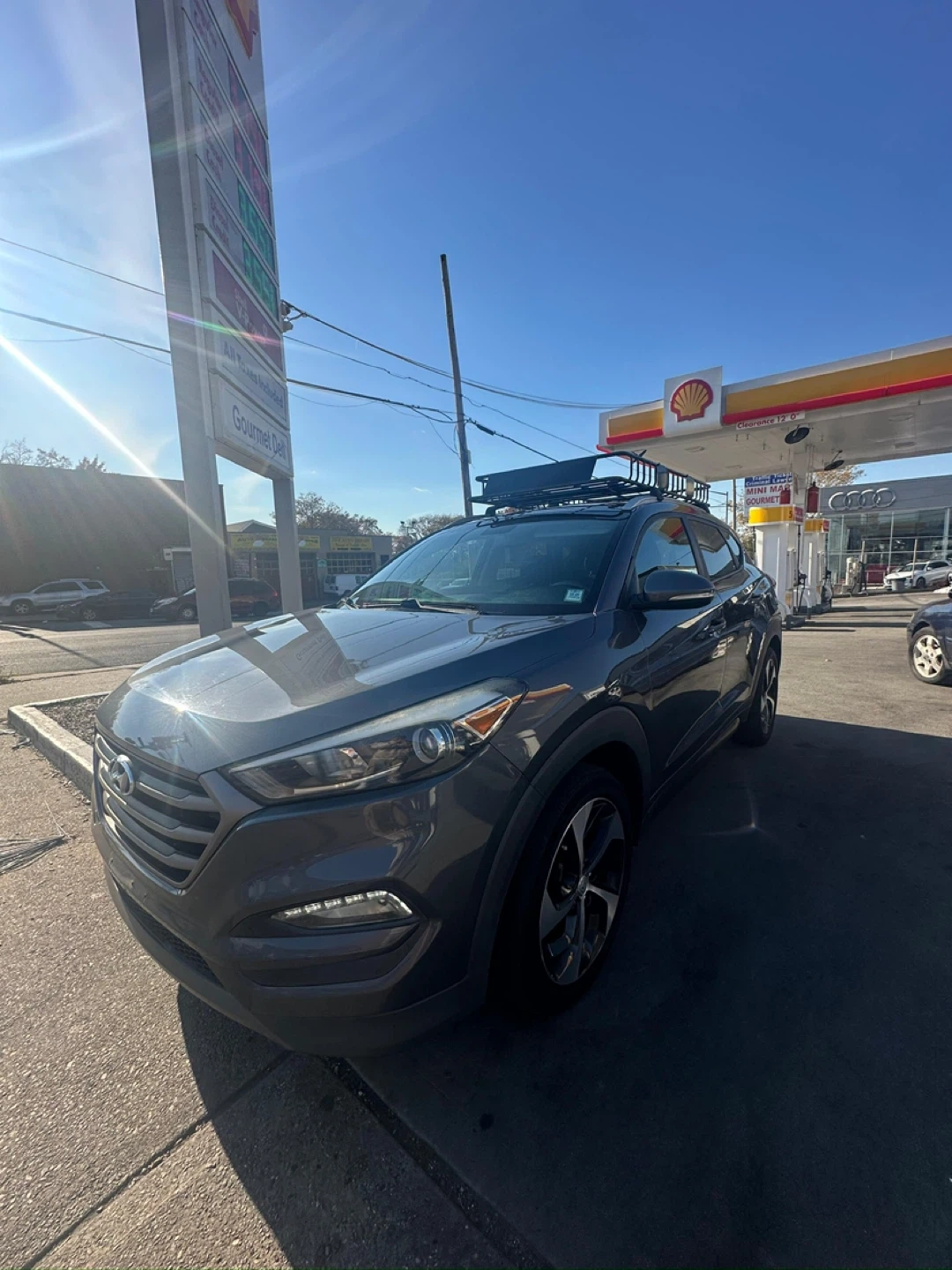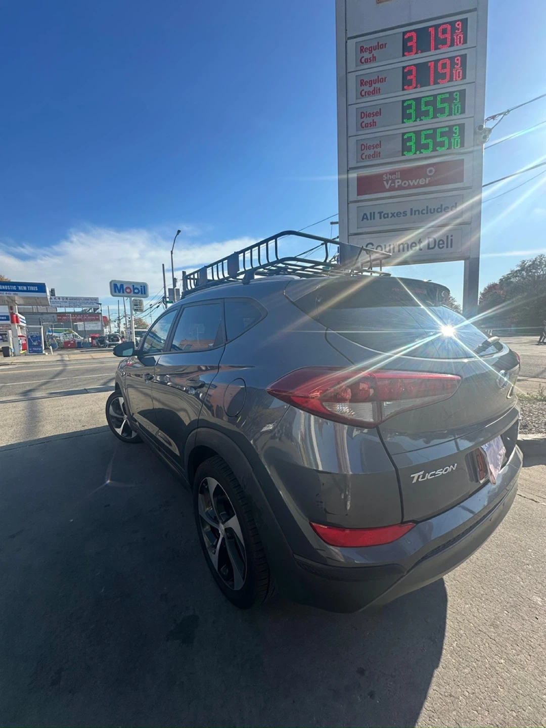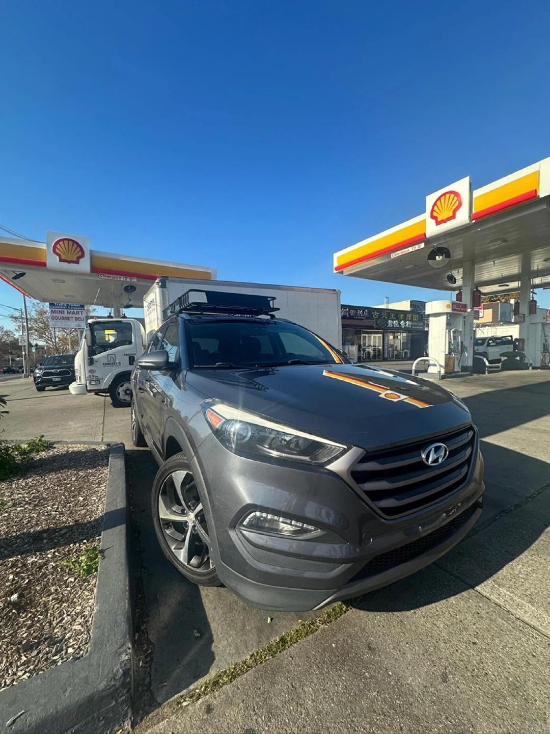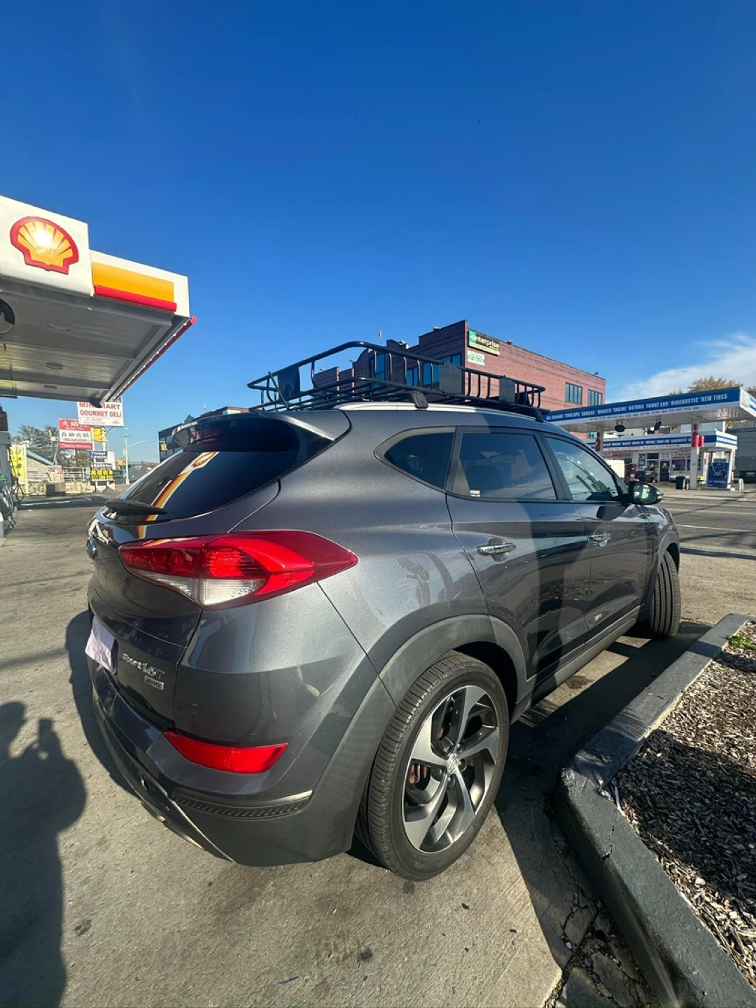 Selling a gray Hyundai Tucson SUV. It drives and runs in very good condition nd has a roof rack installed. The odometer reads 115542 miles with rear camera.