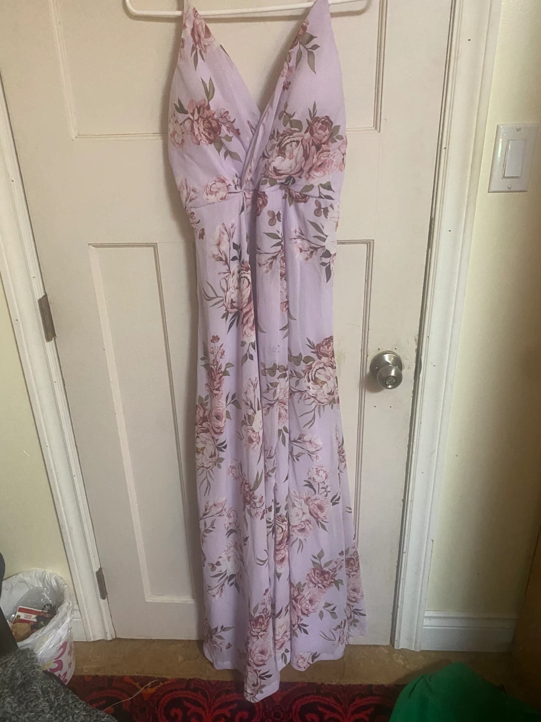 Selling a beautiful floral print dress! It features a lovely floral design in light purple tones. Perfect for a special occasion or a summer day out