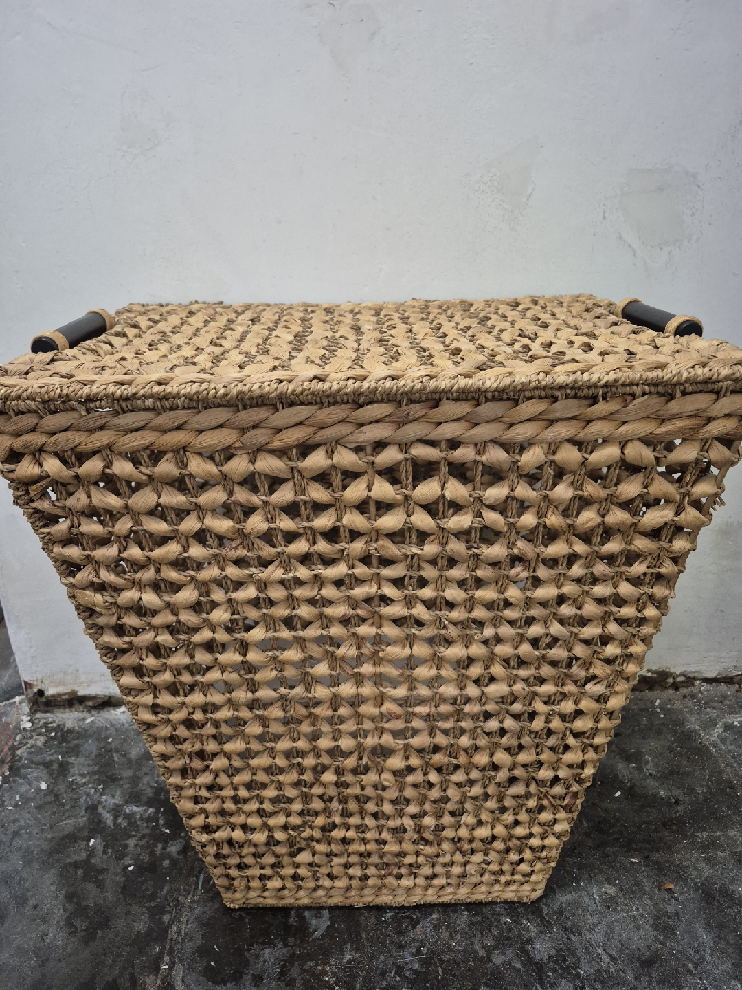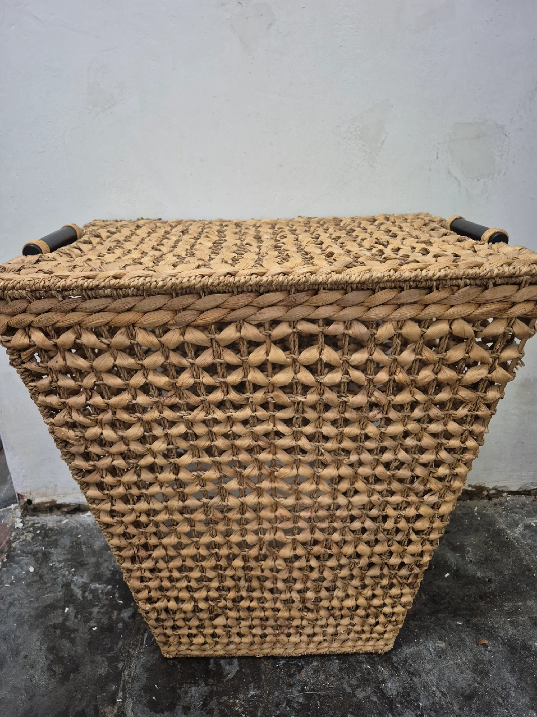 Selling a woven storage basket with a lid. It's in great condition and perfect for organizing your home. The basket has a natural, earthy tone that would look great in any room.