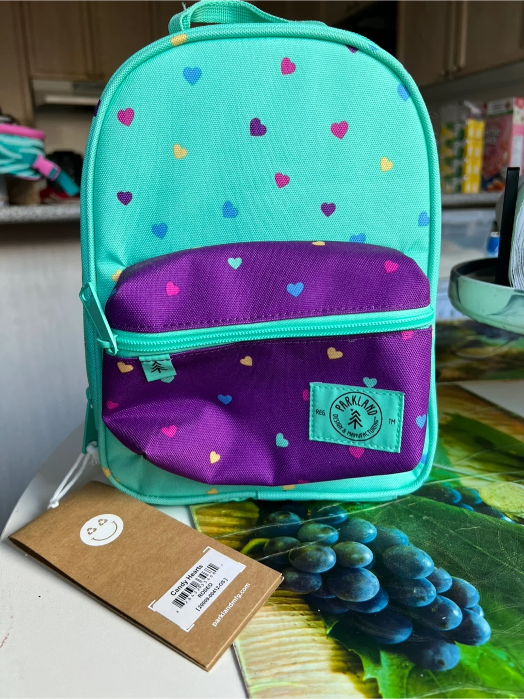 This Parkland lunch bag features a cute Candy Hearts design. It's perfect for keeping your lunch cool and organized. The bag is in great condition and ready for a new home!