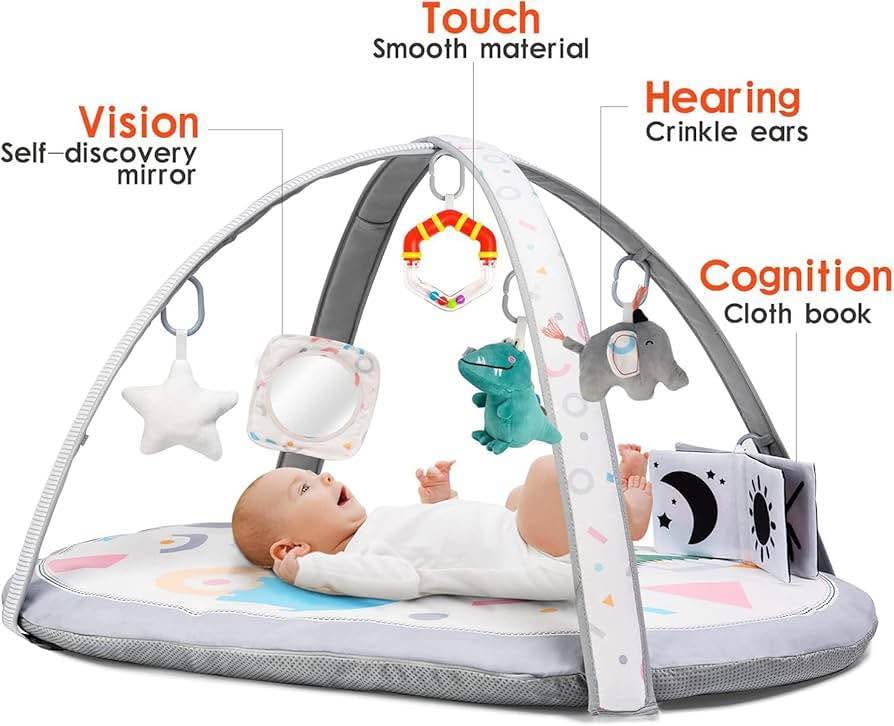 Brand new Lupantte 7-in-1 Baby Play Gym Mat with 2 Washable Covers, Infant Activity Mat with 6 Sensory Toys for Visual, Hearing & Cognitive Development, Thick Non-Slip Playmat for Babies & Toddlers