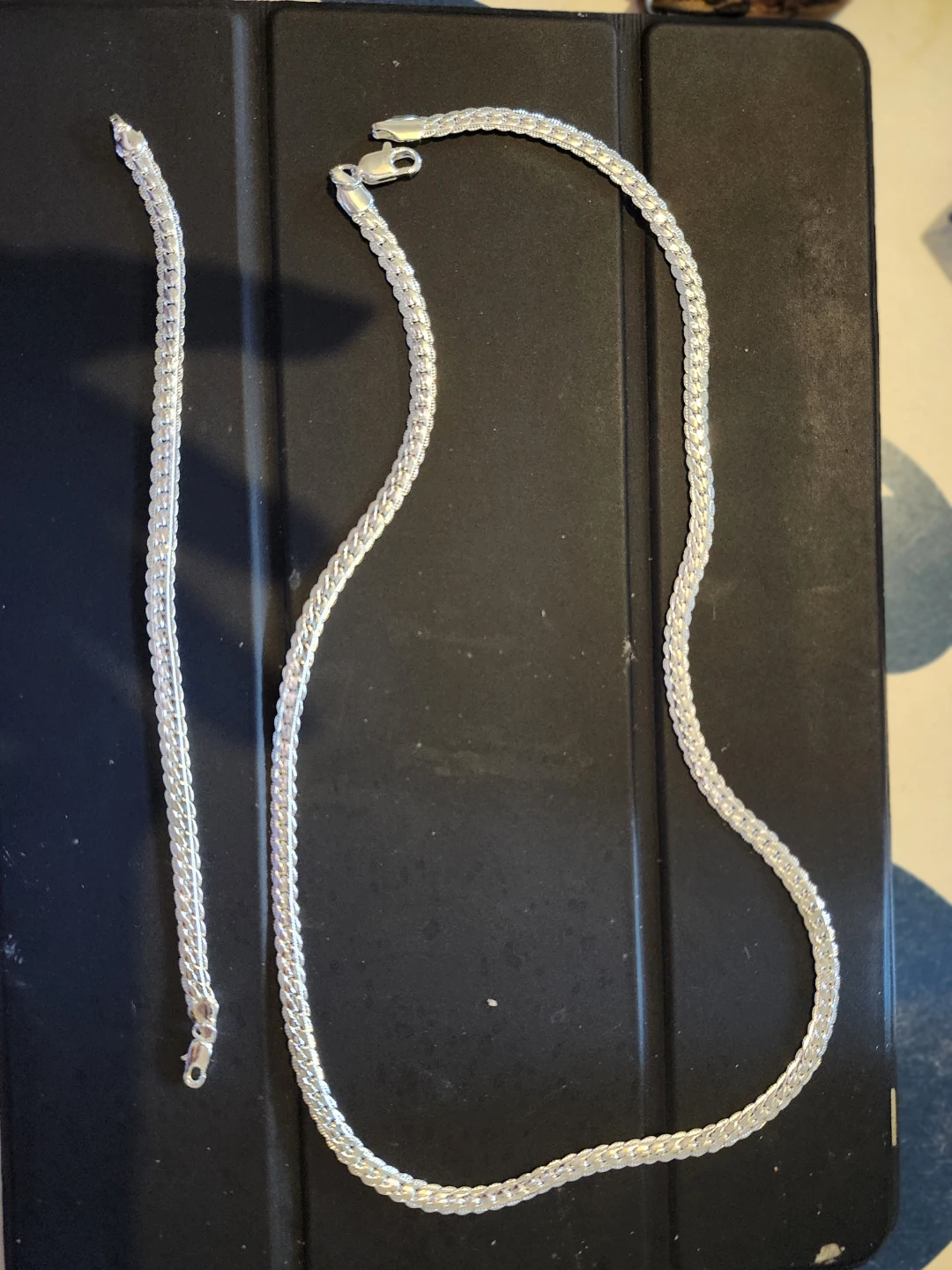 Selling a matching silver chain necklace and bracelet set. They're in new condition and would make a lovely addition to any outfit!