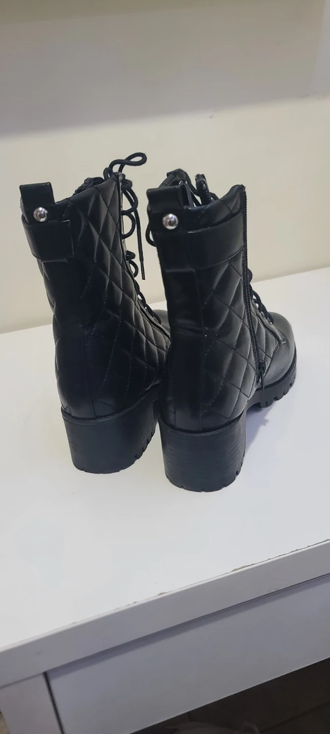 Guess Black Quilted Lace-Up Combat Boots