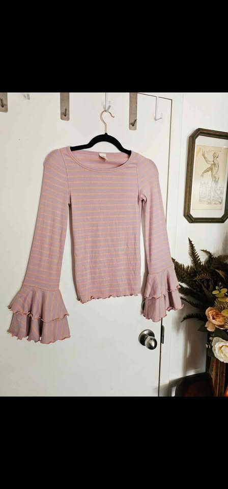 XS Free People Striped Ruffle Bell Sleeve Long Sleeve Top