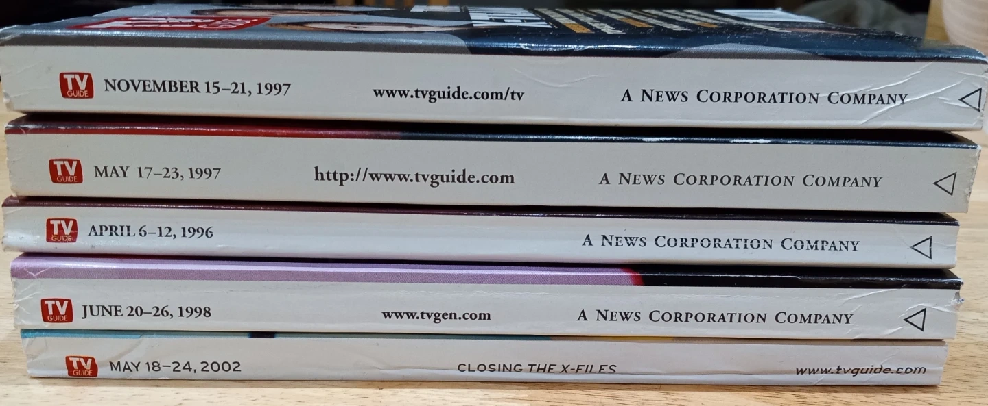 Set of five TV Guide magazines featuring The X-Files! These are collector's items with different covers and inside content related to the show. Excellent condition. Perfect for any fan or collector! FREE!!