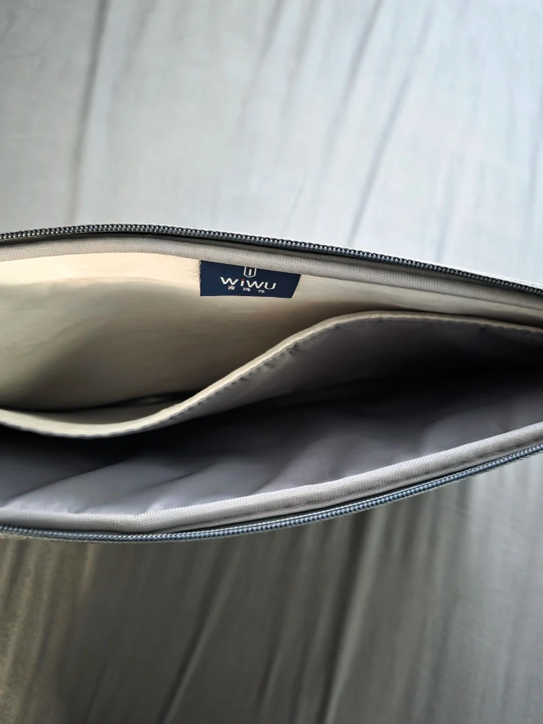 Selling a WIWU laptop sleeve in grey! It's in great condition and perfect for protecting your laptop on the go. It has a sleek design and practical compartments for accessories