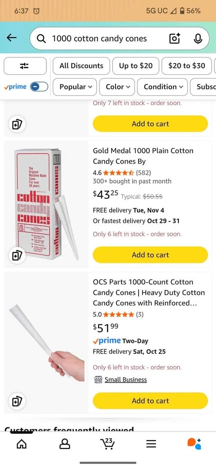 Buy & SellCotton candy cones 1000packCotton candy cones 1000pack$25Selling brand new box of cotton candy cones. Works with so many machines and is great for holding the fluffWHERE TO MEETCheck LocationView MapSELLERdanCrown Heights150 reviews0 chats·0 favorites·8 viewsSEND CHAT TO SELLERHi dan! I’m interested in your listing.Hi dan! I’m interested in your listing.Get the Karrot app to chatSign In to chat
