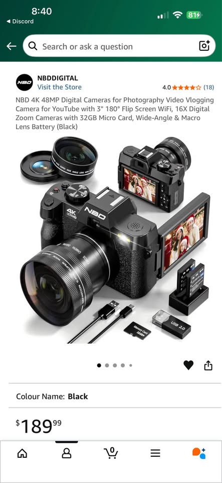 NBD 4K 48MP Digital Cameras for Photography Video Vlogging Camera for YouTube with 3" 180° Flip Screen WiFi, 16X Digital Zoom Cameras with 32GB Micro Card, Wide-Angle & Macro Lens Battery (Black)
