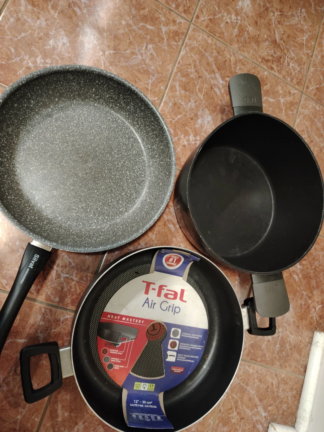 🥕Selling a set of T-fal cookware, including a 12-inch Air Grip frying pan and a pot! The frying pan features Heat Mastery technology and a durable non-stick surface for easy cooking and cleaning. The pot complements the set for various cooking needs