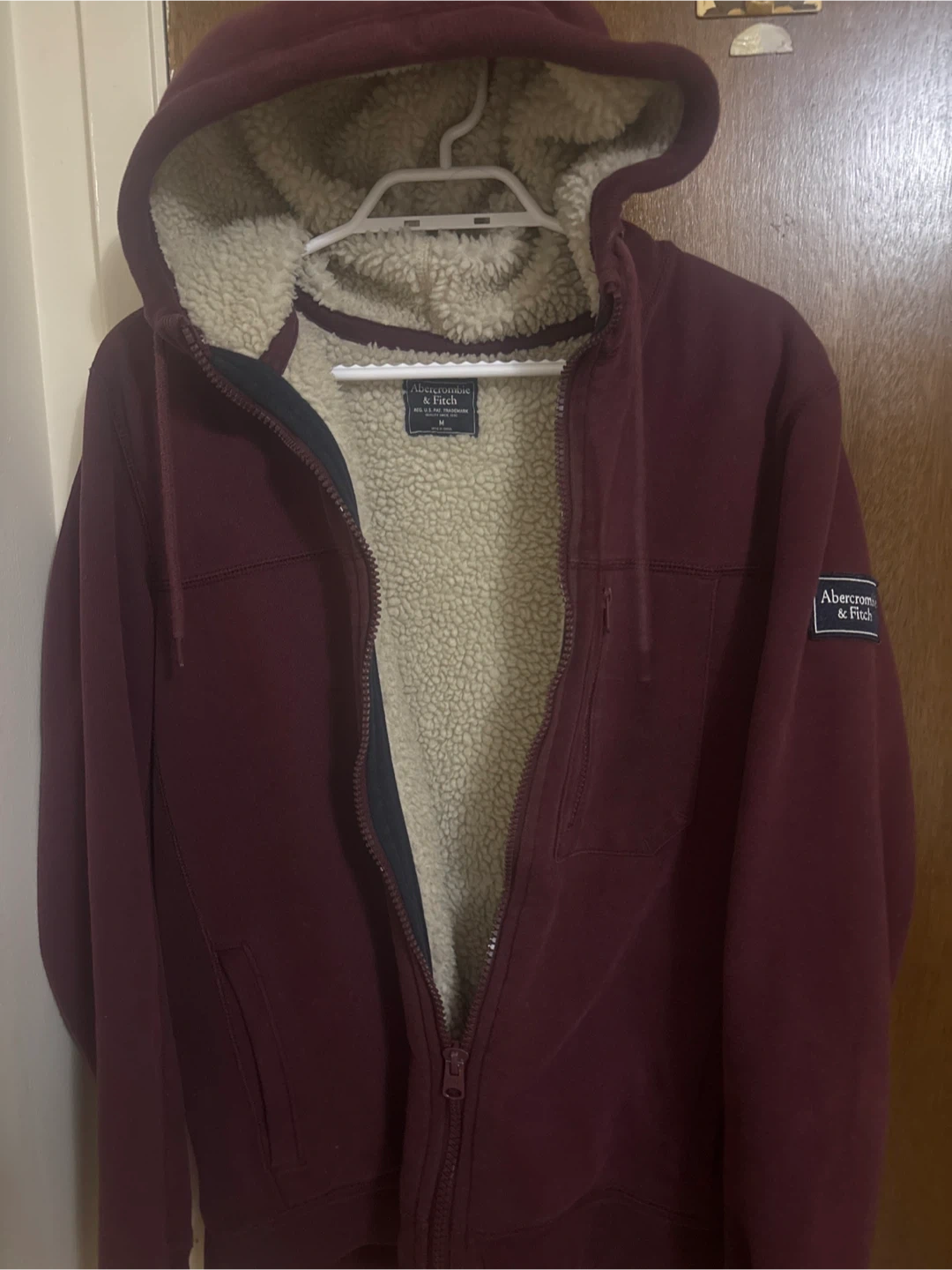 Very Cozy up in this Abercrombie & Fitch hoodie! It's a size medium and features a “warm “sherpa lining. Perfect for those chilly Canadian days!