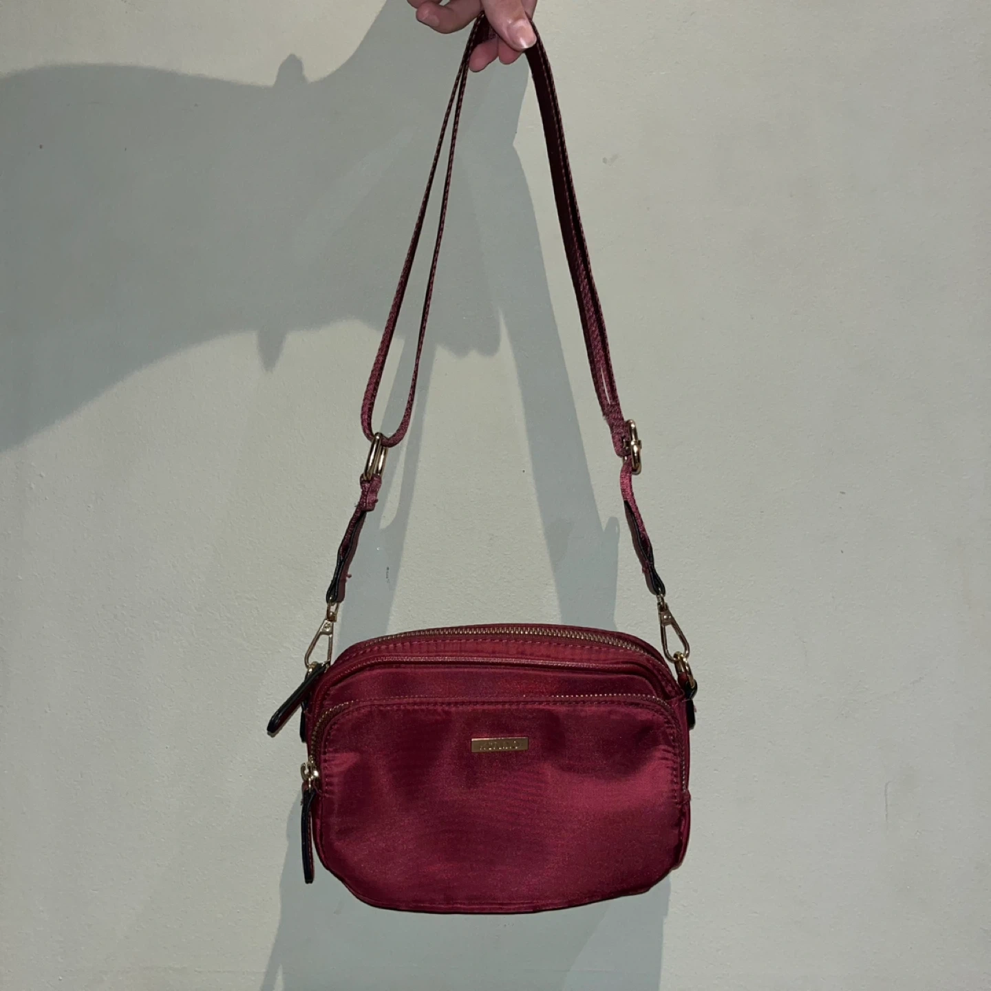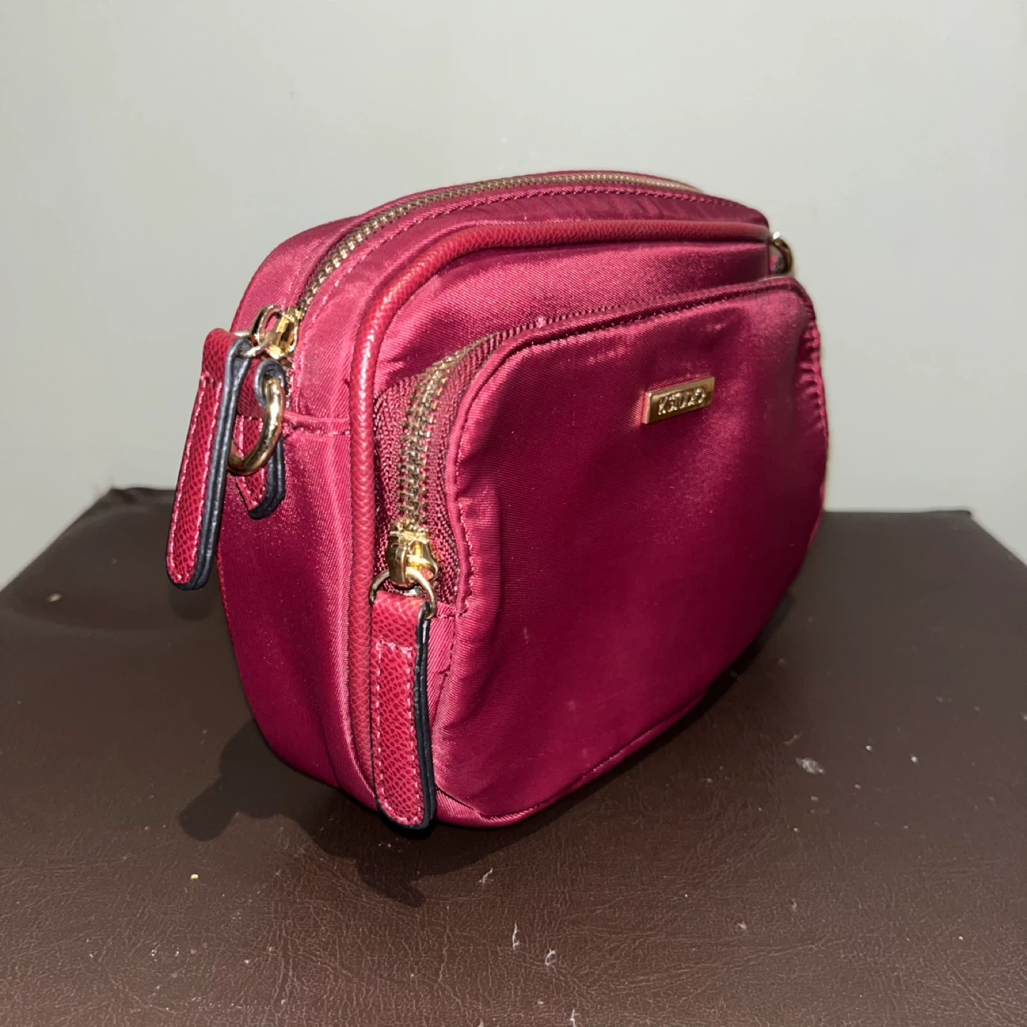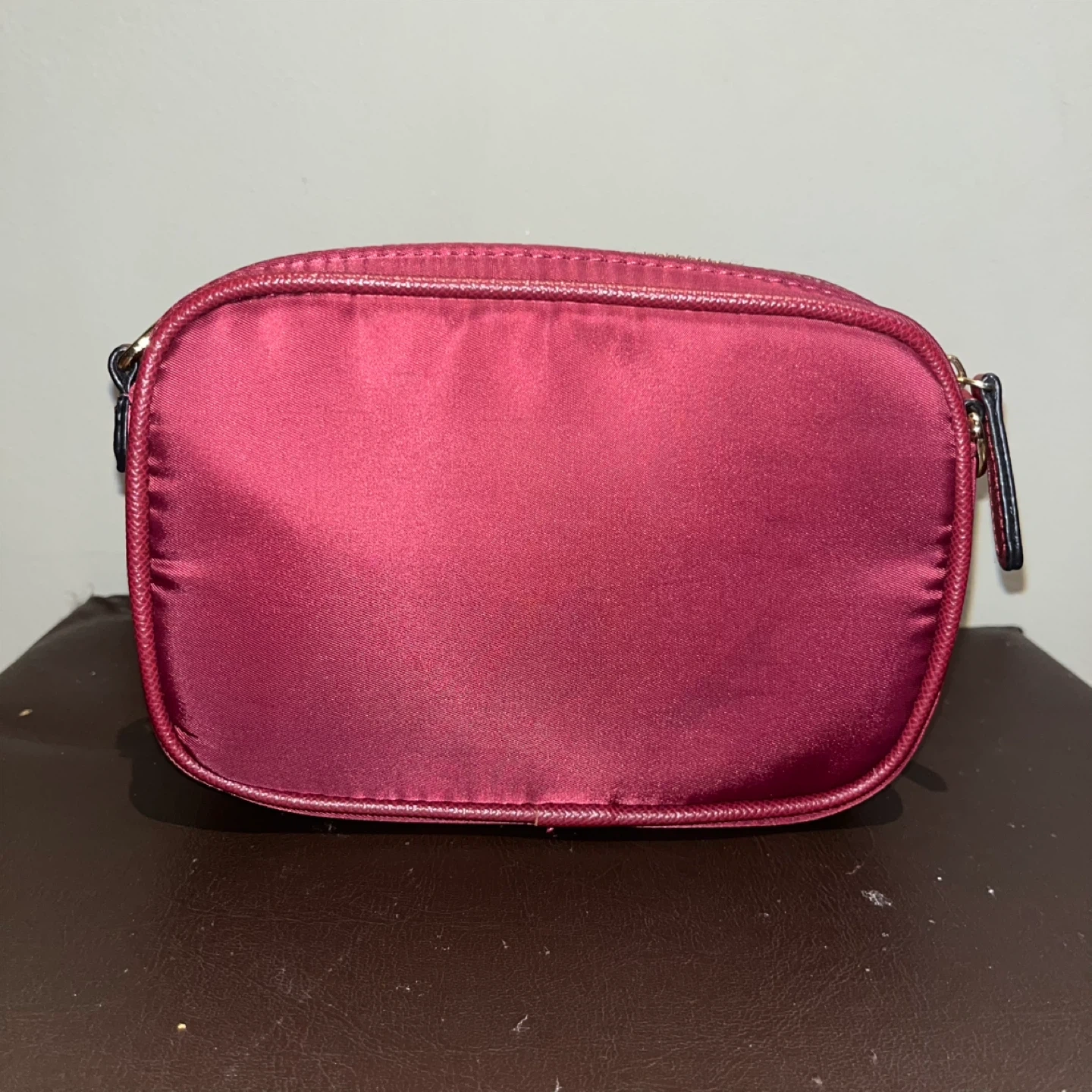 Original crossbody strap included. Has 2 zippered pocket compartments, with a single card holder in the main compartment.