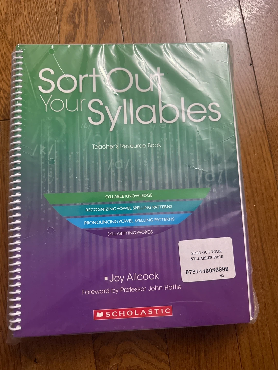 I'm selling a brand new copy of "Sort Out Your Syllables" Teacher's Resource Book by Joy Allcock! It's still in its original packaging and ready to help with syllable knowledge, vowel spelling patterns, and syllabifying words